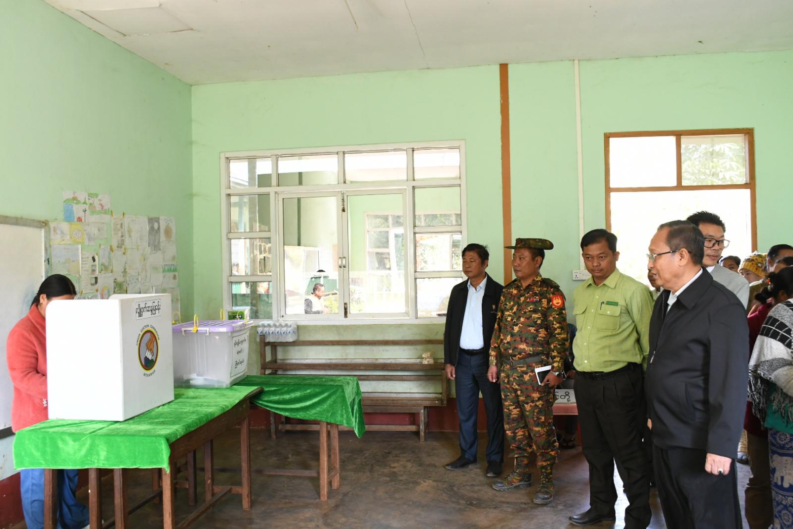 ဆက်လက်၍ ပြည်ထောင်စုရွေးကောက်ပွဲကော်မရှင်အဖွဲ့ဝင် ရှမ်းပြည်နယ် (မြောက်ပိုင်း) တာဝန်ခံနှင့် တာဝန်ရှိသူများသည် နမ့်ခိုက်ကျေးရွာ အခြေခံပညာမူလတန်းကျောင်း မဲရုံ၌ နောင်မွန်၊ နောင်ဖော့၊ စဉ့်အင်၊ ခေးနင်းနှင့်ပုန်းထွန်ကျေးရွာအုပ်စုတို့ရှိ မဲဆန္ဒရှင်များ ကြိုတင်ဆန္ဒမဲပေးမှုအခြေအနေများနှင့် ဆင်းရွှေလီပြဇာတ်ရုံမဲရုံ၌ မယ်ဟန်၊ ခါးသျှိ၊ မန်ပျဉ်၊ နမ့်ပေါင်နှင့် နမ္မဗောဒကျေးရွာအုပ်စုများရှိ မဲဆန္ဒရှင်များ ကြိုတင်ဆန္ဒမဲပေးမှု အခြေအနေများအား ကြည့်ရှုခဲ့ရာ ကြိုတင်ဆန္ဒမဲပေးနိုင်ရေးအတွက် မဲရုံမှူး၊ ဒုတိယမဲရုံမှူးနှင့် ကျေးရွာအုပ်စု ကော်မရှင်အဖွဲ့ခွဲဝင်များက လုပ်ငန်းဆောင်ရွက်မှုအခြေအနေများအား ရှင်းလင်းတင်ပြခဲ့ပြီး ပြည်ထောင်စုရွေးကောက်ပွဲကော်မရှင်အဖွဲ့ဝင် ရှမ်းပြည်နယ် (မြောက်ပိုင်း) တာဝန်ခံ ဦးမြင့်ဦးက ပေါင်းစပ်ညှိနှိုင်း ဆောင်ရွက်ခဲ့ကြောင်း သိရသည်။