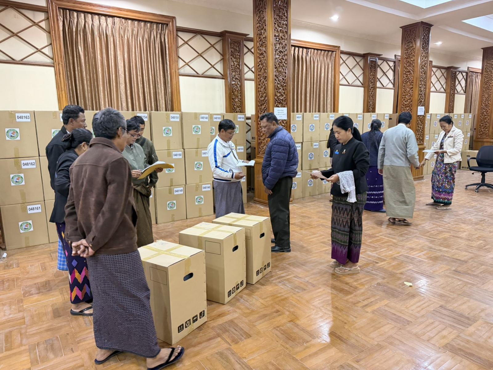 ၂၀၂၅ ခုနှစ်၊ ဒီဇင်ဘာ ၂၈ ရက်နေ့တွင် ကျင်းပပြုလုပ်မည့် ပါတီစုံဒီမိုကရေစီအထွေထွေရွေးကောက်ပွဲကာလတွင် အသုံးပြုမည့် MEVM မြန်မာ့အီလတ်ထရောနစ်မဲပေးစက်နှင့် ဆက်စပ်ပစ္စည်းများအား ချမ်းအေးသာစံမြို့နယ်အတွင်းရှိ သက်ဆိုင်ရာတာဝန်ရှိသူများက မန္တလေးတိုင်းဒေသကြီးလွှတ်တော်ရုံး၌ ယနေ့နံနက်ပိုင်းက ထုတ်ယူခဲ့သည်။