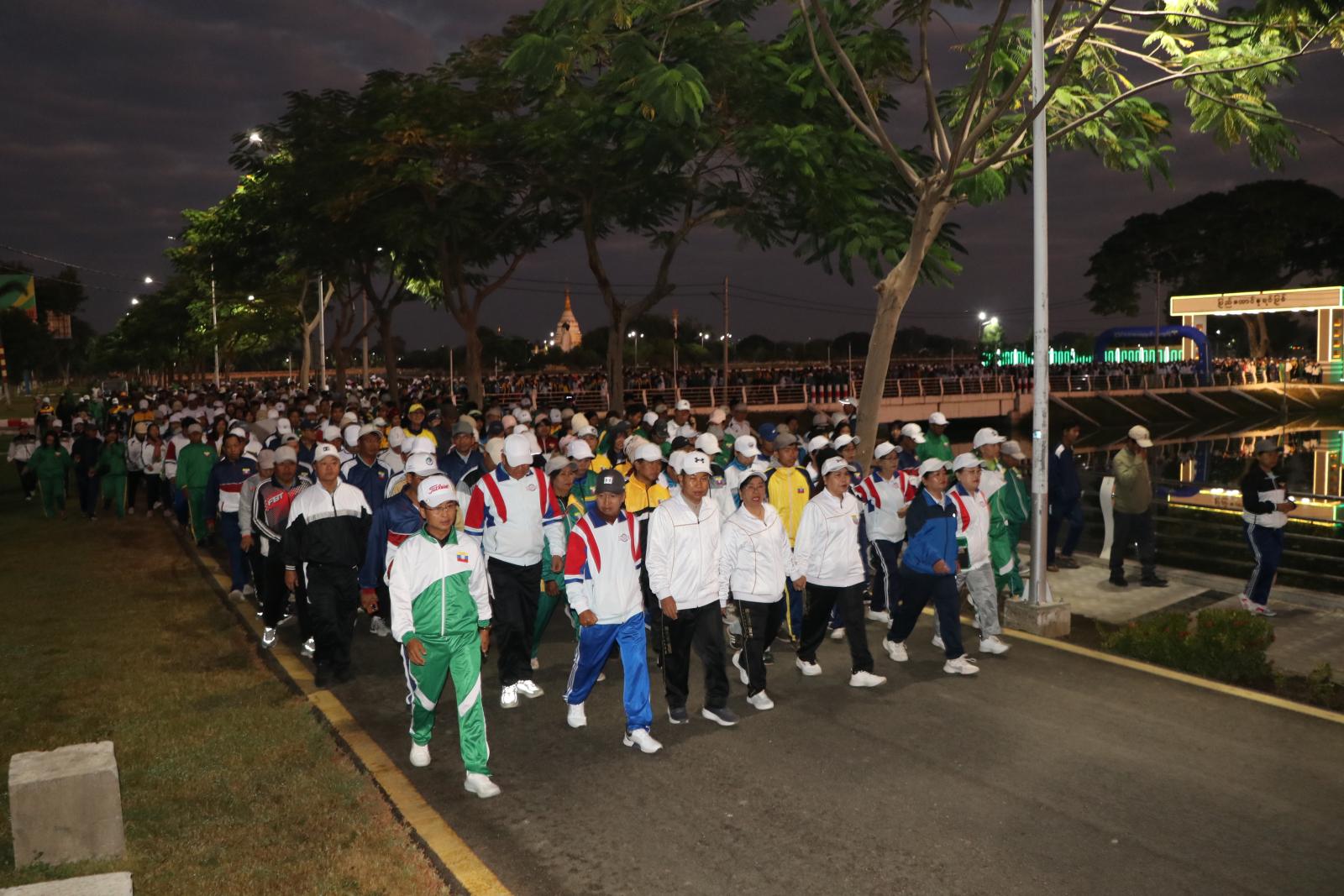 ယင်းနောက် အရှေ့ဘက်ကန်သာယာရှိ ပြည်ထောင်စုရင်ပြင်သို့ ပြန်လည်ဝင်ရောက်ခဲ့ကြပြီး အဆိုပါရင်ပြင်၌ ၆ ပေခြား စနစ်တကျနေရာယူကြကာ တိုင်းဒေသကြီး အားကစားနှင့် ကာယပညာဦးစီးဌာနမှ ဝန်ထမ်းများ၏ ကိုယ်ကာယလေ့ကျင့်ခန်းအတွဲ (၁)အတွဲ(၂) သရုပ်ပြသ မှုများနှင့် Physical Fltness Dance တေးသီချင်းများဖြင့် သွေးပူလေ့ကျင့်ခန်းအား စုပေါင်းဆောင်ရွက်ခဲ့ကြသည်။