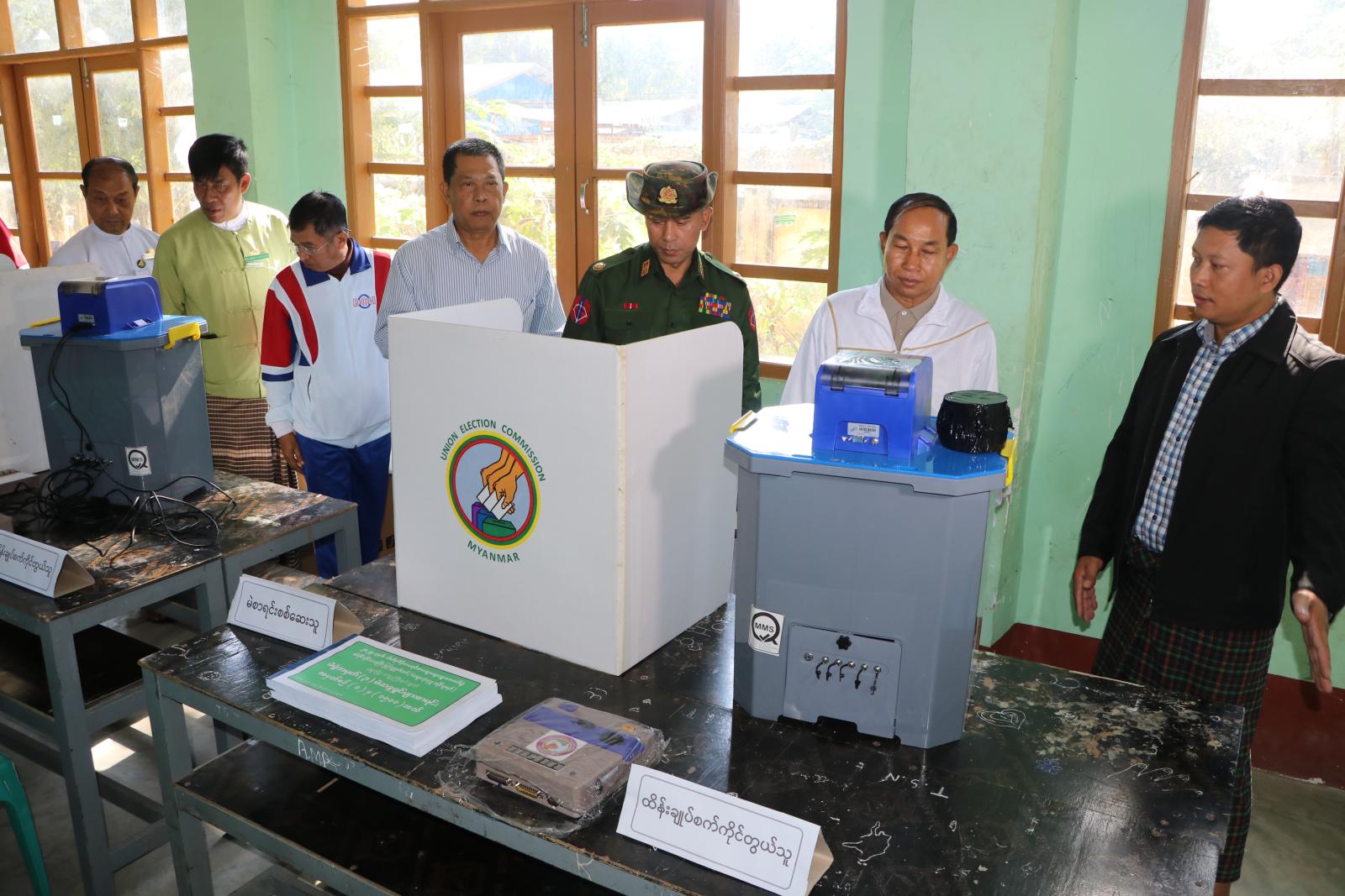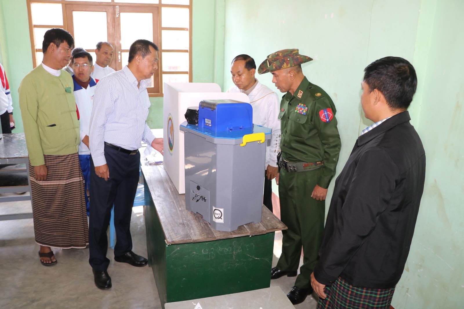 ဆက်လက်၍ တိုင်းဒေသကြီးဝန်ကြီးချုပ်၊ တိုင်းမှူးနှင့် တာဝန်ရှိသူများသည် အဆိုပါ ကျောင်းဝန်းအတွင်းရှိ မဲရုံအမှတ်(၁)နှင့် မဲရုံအမှတ်(၃) ပြင်ဆင်ဆောင်ရွက်ထားရှိမှုများအားလည်းကောင်း၊ အိုးဘိုတောင်ရပ်ကွက်၊ အခြေခံပညာအလယ်တန်းကျောင်း(ခွဲ)ဝန်းအတွင်းရှိ အိုးဘိုတောင်ရပ်ကွက် မဲဆန္ဒရှင်ပြည်သူများ ဆန္ဒမဲပေးနိုင်ရန်အတွက် မဲရုံအမှတ်(၁)နှင့် မဲရုံအမှတ်(၂) ပြင်ဆင်ဆောင်ရွက်ထားရှိမှုများအား လိုက်လံကြည်ရှုခဲ့ကြပြီး မဲရုံမှူး၊ ဒုတိယမဲရုံများနှင့်အဖွဲ့ဝင်များအား ရင်းရင်းနှီးနှီးတွေ့ဆုံကာ လိုအပ်သည်များကို တာဝန်ရှိသူများနှင့် ဖြည့်ဆည်းပေါင်းစပ် ဆောင်ရွက်ပေးခဲ့ကြောင်း သိရသည်။