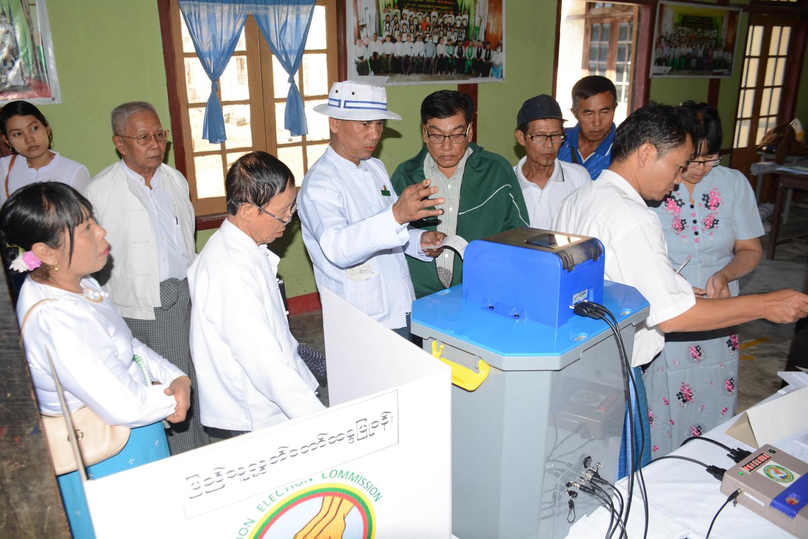 ကြံခင်းမြို့ပေါ်ရပ်ကွက် (၃)ခုရှိ မဲရုံ (၆)ရုံတွင် အီလက်ထရောနစ်မဲပေးစက် (MEVM) တပ်ဆင်ဆောင်ရွက်ထားရှိမှု၊ မဲရုံဖွဲ့စည်းပုံနှင့် ဆန္ဒပြုခန်းများပြင်ဆင်ထားရှိမှုအားတို့အား တိုင်းဒေသကြီး ရွေးကောက်ပွဲကော်မရှင်အဖွဲ့(ခွဲ)အဖွဲ့ဝင် ဦးသန်းထွန်း၊ မြို့နယ်ရွေးကောက်ပွဲကော်မရှင်အဖွဲ့(ခွဲ)ဥက္ကဋ္ဌ ဦးလှိုင်ဝင်းနှင့်အဖွဲ့ဝင်များက ကြည့်ရှုစစ်ဆေးပြီး၊ လွှတ်တော်အလိုက် အီလက်ထရောနစ် မဲပေးစက် (MEVM) ဖြင့် ဆန္ဒမဲပေးရာတွင် ပါတီများမှန်ကန်မှုရှိစေရေး ပါတီကိုယ်လှယ်လောင်းများ ရှေ့မှောက်တွင် စမ်းသပ်မဲပေးခြင်းများကိုဆောင်ရွက်ကြသည်။ ထို့နောက် တိုင်းဒေသကြီး ရွေးကောက်ပွဲ ကော်မရှင်အဖွဲ့(ခွဲ) အဖွဲ့ဝင်က မဲရုံမှူး၊ ဒုမဲရုံမှူးများအား လိုအပ်သည်များကို လမ်းညွှန်မှာကြားခဲ့ သည်။
