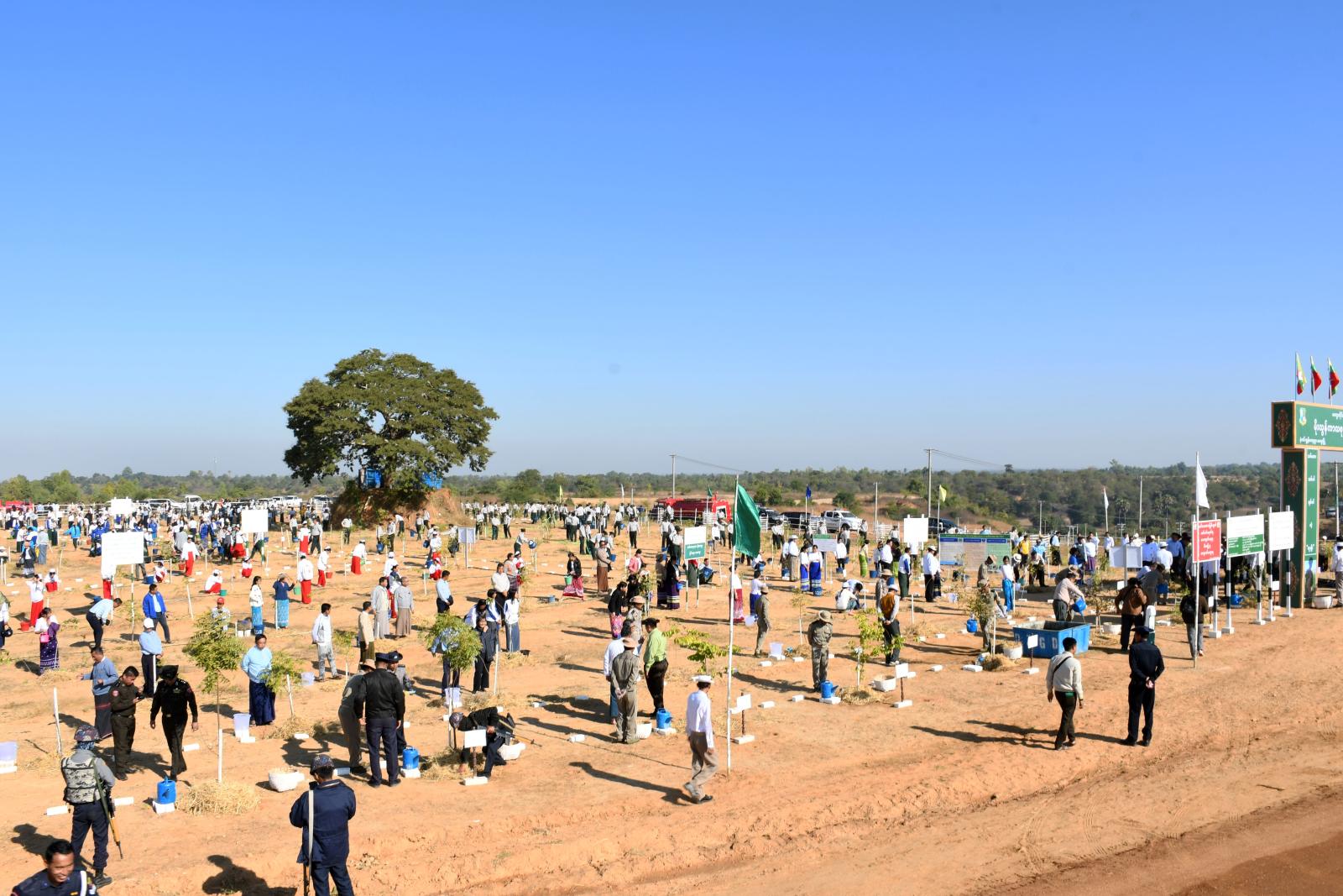 ဆက်လက်၍ တိုင်းဒေသကြီးဝန်ကြီးချုပ်၊ ဝန်ကြီးများနှင့်တာ၀န်ရှိသူများ၊ လူမှုရေးအသင်း အဖွဲ့ဝင်များနှင့် ကျောင်းသား၊ ကျောင်းသူများက အရိပ်ရအပင်များနှင့် လေကာတန်းပင် များအား ဓာတ်မြေဩဇာကျွေးခြင်း၊ ကောက်ရိုးခြောက်များဖုံးအုပ်၍ တစ်ပျော်တစ်ပါး ရေလောင်းခဲ့ကြရာ ဝန်ကြီးချုပ်နှင့် တာဝန်ရှိသူများက စိုက်ပျိုးပြီးသောသစ်ပင်များ ရေလောင်းပြုစုထိန်းသိမ်းနေမှုကို လှည့်လည်ကြည့်ရှုအားပေးခဲ့ကြောင်းသိရသည်။