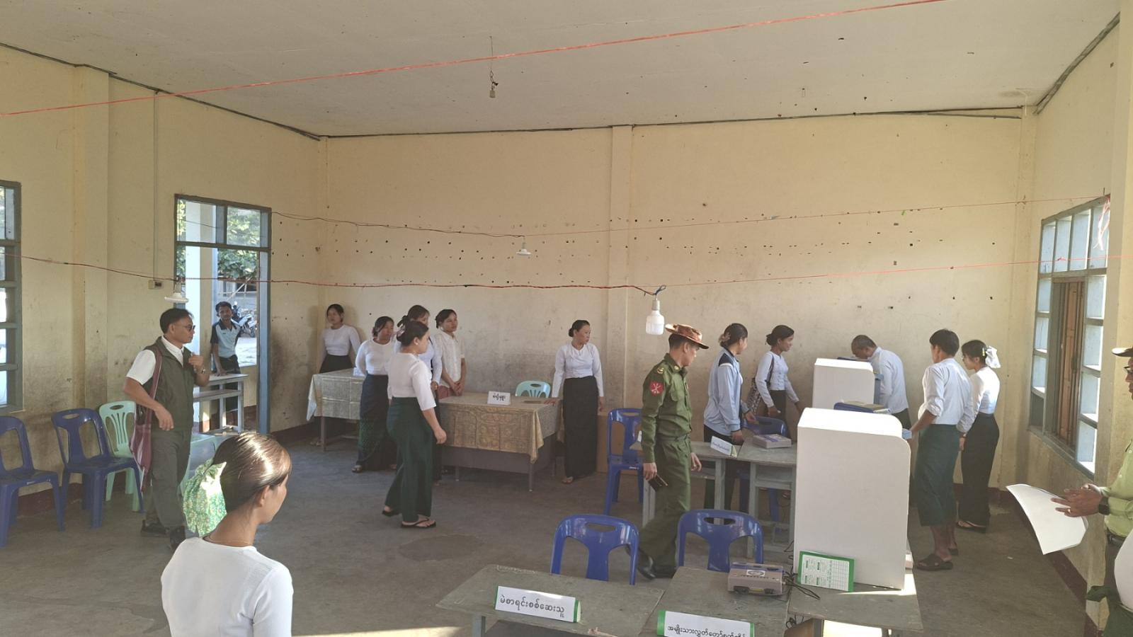 ကရင်ပြည်နယ်၊မြဝတီခရိုင်၊မြဝတီမြို့၌ ၂၀၂၅ ခုနှစ်၊ ဒီဇင်ဘာလ ၂၈ ရက်နေ့တွင် ကျင်းပပြုလုပ်မည့် ပါတီစုံဒီမိုကရေစီအထွေထွေ ရွေးကောက်ပွဲ အောင်မြင်စွာကျင်းပနိုင်ရေးအတွက် ယမန်နေ့နံနက် ၉နာရီ၌ သတ်မှတ်မဲရုံများ စီမံပြင်ဆင်ဆောင်ရွက်ထားရှိမှုအခြေအနေများကို ခရိုင်စီမံခန့်ခွဲရေးနှင့်အုပ်ချုပ်ရေးကော်မတီဥက္ကဋ္ဌ ဦးကောင်းစံလင်းနှင့်အဖွဲ့ဝင်များ၊ မြို့နယ်စီမံခန့်ခွဲရေးနှင့်အုပ်ချုပ်ရေးကော်မတီဥက္ကဋ္ဌ ဦးဇော်မော်အောင်နှင့်ခရိုင် ရွေးကောက်ပွဲကော်မရှင်အဖွဲ့ခွဲဥက္ကဋ္ဌ ဦးမြင့်ဦး၊ ခရိုင်ရွေးကောက်ပွဲအရာရှိ ဦးမျိုးမင်းထက်နှင့် ခရိုင်/မြို့နယ် ရွေးကောက်ပွဲကော်မရှင်အဖွဲ့ခွဲမှ ဌာနဆိုင်ရာတာဝန်ရှိသူများက မြဝတီမြို့ပေါ်/ကျေးရွာများရှိ သတ်မှတ်မဲရုံ ပြင်ဆင်နေရာ ချထားမှုအခြေအနေနှင့် မဲပေးစက်နှင့်ဆက်စပ်ပစ္စည်းများ သတ်မှတ်ပုံစံအတိုင်း စီမံပြင်ဆင်ထားရှိမှု အခြေအနေများကို ကွင်းဆင်းကြည့်ရှုစိစစ်ခဲ့ကြသည်။