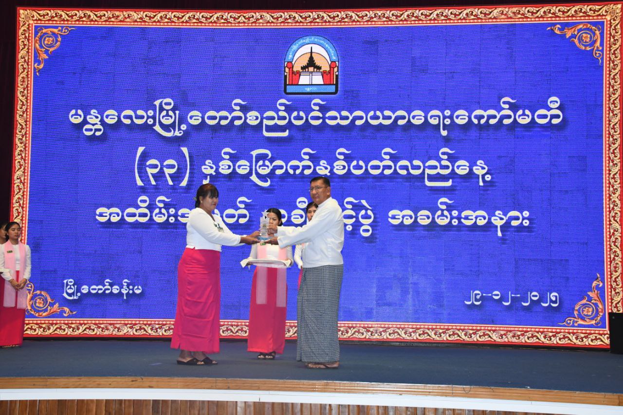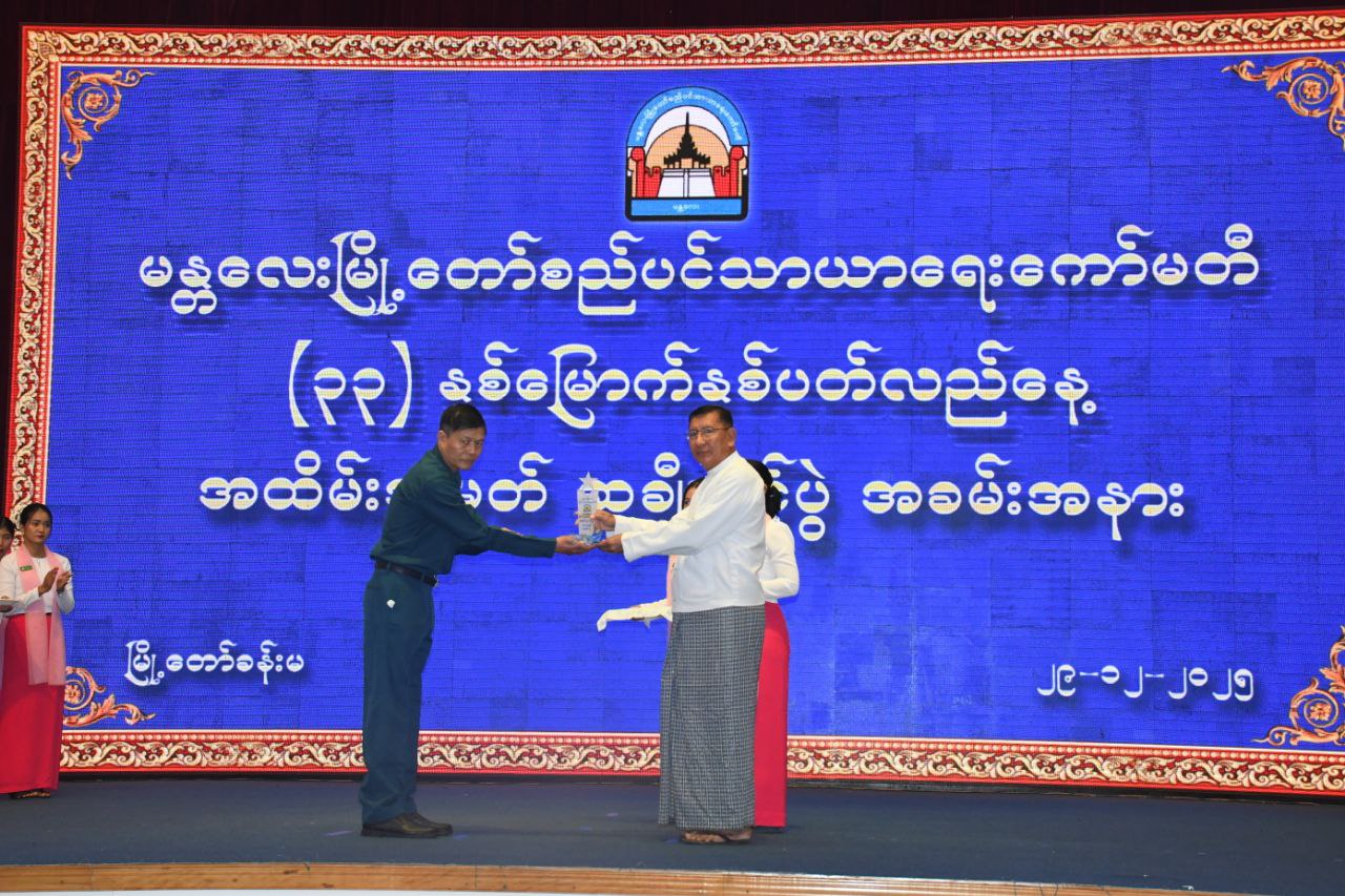 မန္တလေးမြို့တော်စည်ပင်သာယာရေးကော်မတီ (၃၃)နှစ်မြောက် နှစ်ပတ်လည်နေ့အထိမ်းအမှတ် ဝန်ထမ်းထူးချွန်ဆု၊ သင်တန်းထူးချွန်ဆု၊ ဆုချီးမြှင့်ပွဲအခမ်းအနားကို မန္တလေးမြို့ မြို့တော်ခန်းမ၌ ယမန်နေ့မွန်းလွဲပိုင်းက ကျင်းပခဲ့သည်။