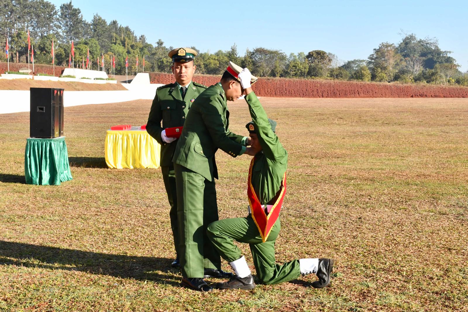 ပြည်သူ့စစ်မှုထမ်း သင်တန်းအမှတ်စဉ်(၁၇) ကတိသစ္စာခံယူပွဲနှင့်သင်တန်းဆင်းပွဲကို ယမန်နေ့နံနက် ၈ နာရီက ရပ်စောက်မြို့နယ်၊ ဗထူးတပ်မြို့ တပ်မတော်(ကြည်း)ဗိုလ်သင်တန်းကျောင်း စစ်ရေးပြကွင်း၌ကျင်းပရာ ရှမ်းပြည်နယ်အစိုးရအဖွဲ့မှ လမ်းပန်းဆက်သွယ်ရေးဝန်ကြီး ဦးနေဝင်းအောင်၊ တပ်မတော်(ကြည်း) ဗိုလ်သင်တန်းကျောင်း (ဗထူး) ကျောင်းအုပ်ကြီး ဗိုလ်မှူးချုပ် မင်းသီဟနှင့်တပ်နယ်မှအရာရှိများ၊ မြို့နယ်စီမံခန့်ခွဲရေးနှင့်အုပ်ချုပ်ရေးအဖွဲ့ဝင်များ၊ မြို့နယ်အဆင့်ဌာနဆိုင်ရာအကြီးအကဲများ၊ ဝန်ထမ်းများ၊ ရပ်ကွက်/ကျေးရွာအုပ်စုအုပ်ချုပ်ရေးမှူးများနှင့် ပြည်သူ့စစ်မှုထမ်းသင်တန်းသားများ တက်ရောက်ခဲ့ကြသည်။ သင်တန်းဆင်းပွဲတွင် တပ်မတော်(ကြည်း) ဗိုလ်သင်တန်းကျောင်းမှ ကျောင်းအုပ်ကြီးက စံပြတပ်သားဆု၊ လက်ဖြောင့်ထူးချွန်ဆု၊ စစ်မြေပြင် အင်ဂျင်နီယာထူးချွန်ဆု၊ ချေမှုန်းရေး အကောင်းဆုံးတပ်စိတ်ဆု၊ စစ်သည်တော်ကျင့်ဝတ်ဆု၊ တပ်စိတ်တိုက်ပွဲ အကောင်ဆုံး တပ်စိတ်ဆု၊ အိပ်ဆောင်ခင်းကျင်းမှု အကောင်းဆုံးဆုများ ပေးအပ်ချီးမြှင့်ခဲ့ပြီးနောက် ကတိသစ္စာခံယူခဲ့ကြသည်။ ထို့နောက် ပြည်သူ့စစ်မှုထမ်း သင်တန်းသား(၇၇) ဦးအား သင်တန်းဆင်းမိန့်ခွန်းပြောကြားပြီး သင်တန်းဆင်းသင်တန်းသားများက ကျောင်းအုပ်ကြီးအား စစ်ကြောင်း ပုံစံဖြင့် ချီတက်အလေးပြုခဲ့ကြောင်းသိရသည်။
