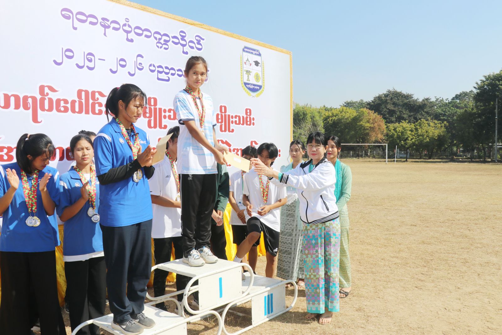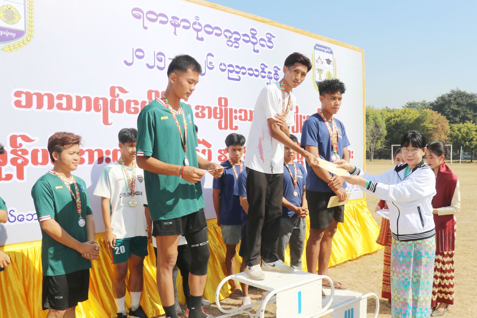 ထို့နောက် ဆုချီးမြှင့်ပွဲကို ဆက်လက်ကျင်းပရာ ပါမောက္ခချုပ်၊ ဒုတိယပါမောက္ခချုပ်များ၊ ပြေးခုန်ပစ်အားကစားဆပ်ကော်မတီဥက္ကဋ္ဌတို့က အားကစားနည်းများအလိုက် ပထမဆု၊ ဒုတိယဆု၊ တတိယဆုရ အားကစားသမားများအား တစ်ဦးချင်းဆုများနှင့် ငွေသားဆုများ ပေးအပ် ချီးမြှင့်ခဲ့ကြောင်း သိရသည်။