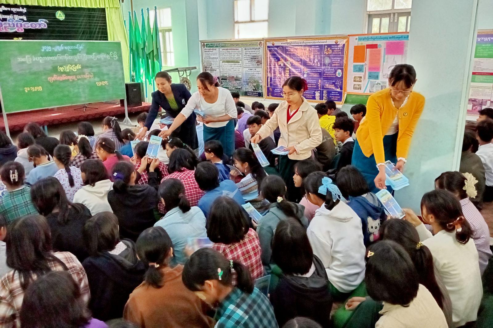 ယင်းနောက် ပြန်ကြားရေးနှင့်ပြည်သူ့ဆက်ဆံရေးဦးစီးဌာန(ရုံးချုပ်)က ထုတ်ဝေသည့် (၇၈)နှစ်မြောက် လွတ်လပ်ရေးနေ့အထိမ်းအမှတ် အသိပညာပေး သတင်းစကားလက်ကမ်းစာစောင်များကို မြို့နယ်ပြန်ကြားရေးနှင့်ပြည်သူ့ဆက်ဆံရေးဦးစီးဌာန ဝန်ထမ်းများက အခမဲ့ဖြန့်ဝေပေးခဲ့ပြီး (၇၈)နှစ်မြောက် လွတ်လပ်ရေးနေ့ အထိမ်းအမှတ် အသိပညာပေးဆိုင်ရာနံရံကပ်စာစောင်များကို ခင်းကျင်းပြသရာ ကျောင်းသား/ကျောင်းသူများက စိတ်ပါဝင်စားစွာကြည့်ရှုလေ့လာခဲ့ကြကြောင်း သိရသည်။