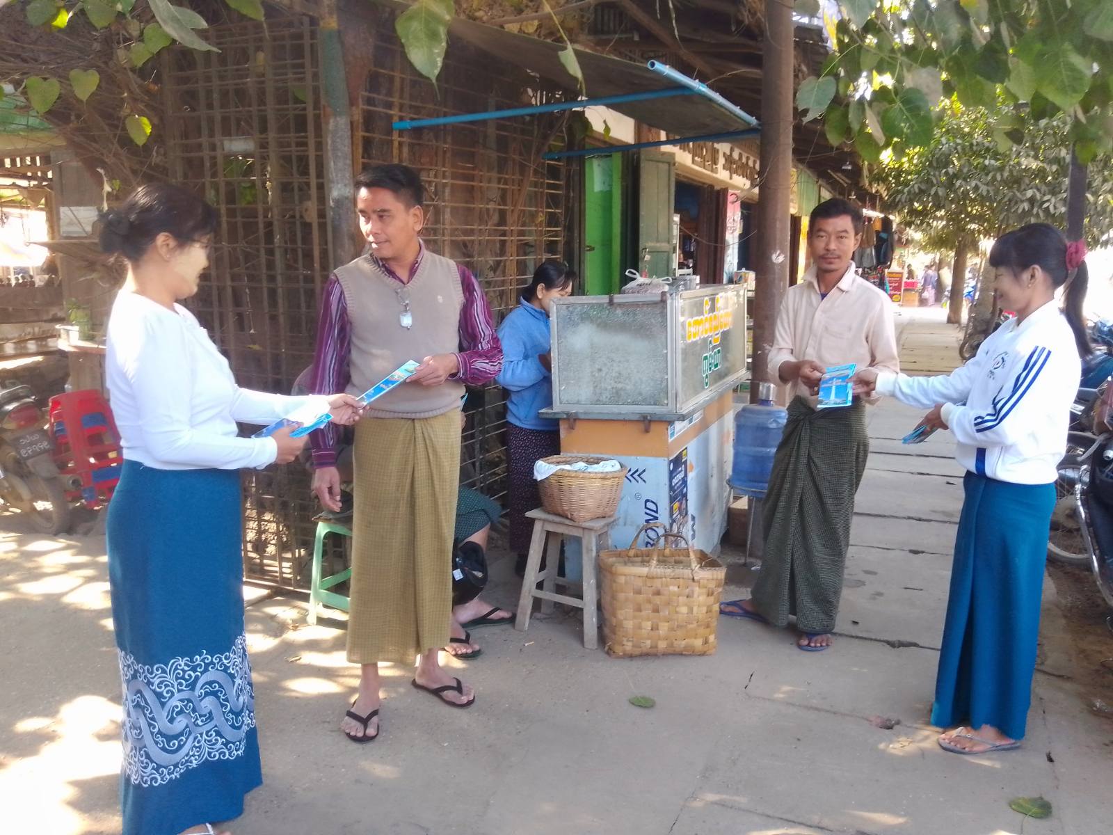 ညောင်ဦးခရိုင် ပြန်ကြားရေးနှင့်ပြည်သူ့ဆက်ဆံရေးဦးစီးဌာန လက်ထောက်ညွှန်ကြားရေးမှူး ဒေါ်ရည်မွန်သူနှင့်ဝန်ထမ်းများသည် လူစည်ကားရာနေရာများဖြစ်သည့် မဏိစည်သူ ဈေး၊ဘုန်းစဉ်အခွန်လွတ်ဈေးသို့ လက်ကမ်းစာစောင်များကိုဖြန့်ဝေပေးခဲ့ကြောင်း သိရသည်။