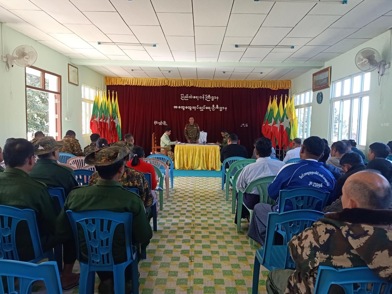 အဆိုပါ လုပ်ငန်းညှိနှိုင်းအစည်းအဝေးသို့ စစ်ဗျူဟာမှူး၊ တပ်နယ်မှူးနှင့် တပ်နယ်မှအရာရှိများ၊ မြို့နယ်စီမံခန့်ခွဲရေးနှင့်အုပ်ချုပ်ရေးကော်မတီဥက္ကဌနှင့် အဖွဲ့ဝင်များ၊ မြို့နယ်ရွေးကောက်ပွဲကော်မရှင်ဥက္ကဋ္ဌနှင့် အဖွဲ့ဝင်များ၊ ရပ်ကွက်/ကျေးရွာအုပ်ချုပ်ရေးမှူးများနှင့် ရပ်ကျေးစာရေးများ၊ ဌာနဆိုင်ရာတာဝန်ရှိသူများ၊ ပြည်သူ့လုံခြုံရေးနှင့် အကြမ်းဖက်နှိမ်နင်းရေးအဖွဲ့ဝင်များနှင့် မြို့နယ်ပြည်သူ့စစ်အဖွဲ့ဝင်များ တက်ရောက်ခဲ့ကြကြောင်း၊ သတင်းရရှိသည်။