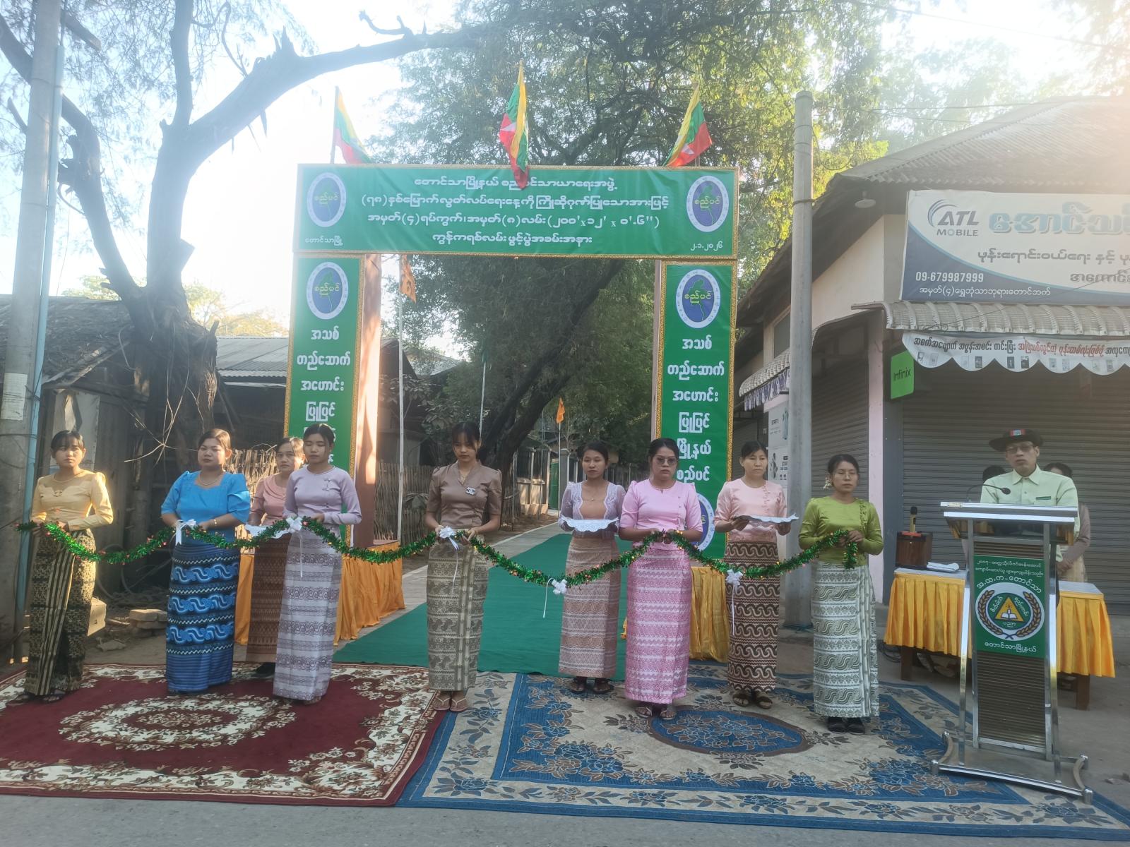 ရှေးဦးစွာ ဖွင့်ပွဲအခမ်းအနားအား မြို့နယ်စီမံခန့်ခွဲရေးနှင့်အုပ်ချုပ်ရေးကော်မတီဥက္ကဋ္ဌ ဦးဟန်သူရမှ အဖွင့်အမှာစကားပြောကြားပြီး မြို့နယ်စီမံခန့်ခွဲရေးနှင့်အုပ်ချုပ်ရေးကော်မတီဥက္ကဋ္ဌ ဦးဟန်သူရ၊ အဖွဲ့ဝင် ဗိုလ်မှူးဇေယျကျော်စွာ၊ မြို့နယ်ရဲတပ်ဖွဲ့မှူး ဒုရဲမှူး ကျော်ဇာလင်း၊ မြို့နယ်စီမံကိန်းရေးဆွဲရေး ဦးစီးဌာနမှ ဦးစီးမှူး ဦးအောင်ဌေးနှင့် မြို့နယ်စည်ပင်သာယာရေးအဖွဲ့ အမှုဆောင်အရာရှိ ဦးချမ်းငြိမ်းတို့မှ ဖဲကြိုးဖြတ်ဖွင့်လှစ်ပေးခဲ့ကြောင်း သိရသည်။