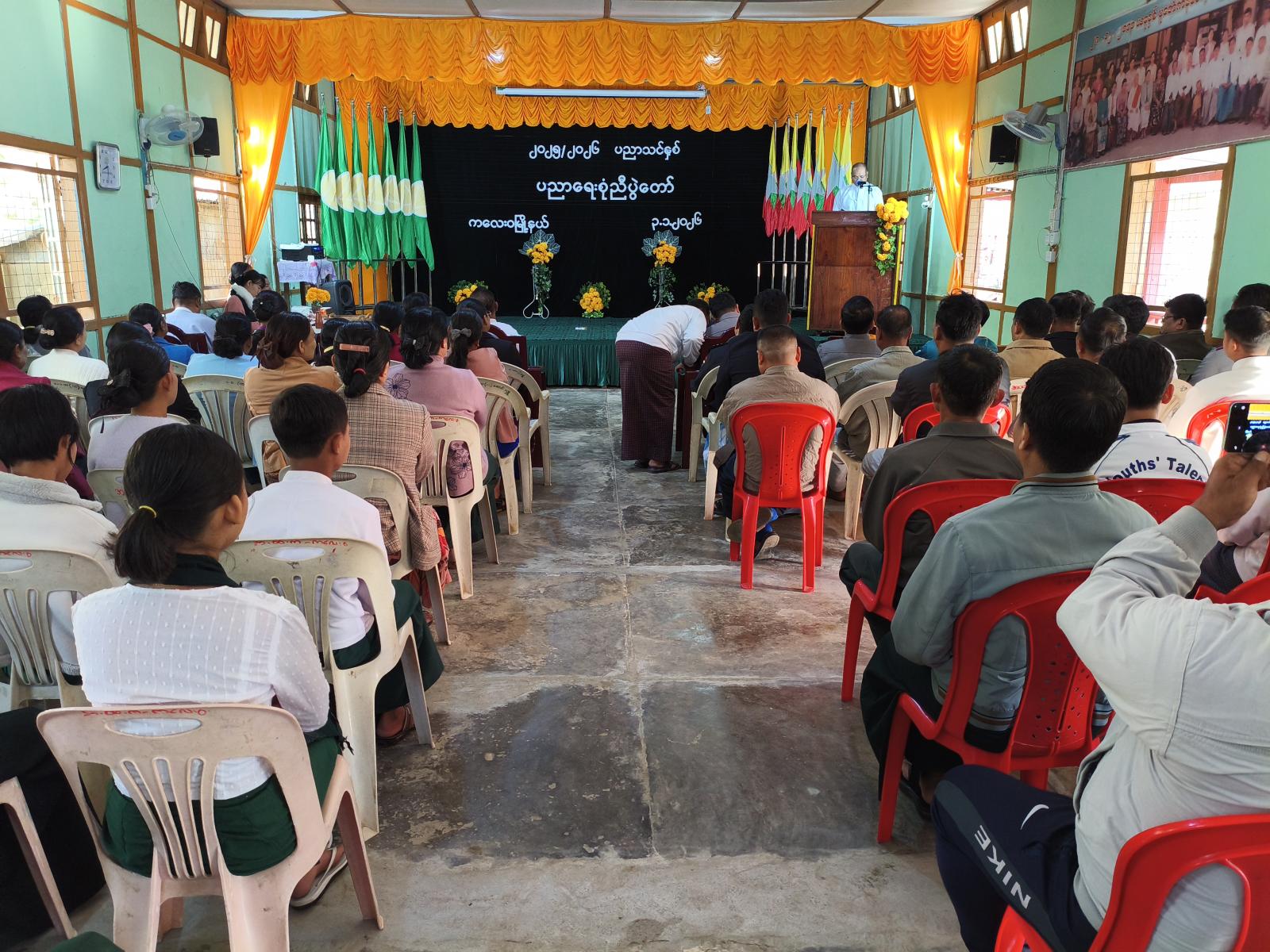 စစ်ကိုင်းတိုင်းဒေသကြီး၊ ကလေးဝမြို့၊ အခြေခံပညာအထက်တန်းကျောင်း ပညာရတနာခန်းမတွင် ၂၀၂၅-၂၀၂၆ ပညာသင်နှစ် ကျောင်းသား ကျောင်းသူများ ကာယ/ဉာဏ/စာရိတ္တ ဘက်စုံပညာဖွံ့ဖြိုးရေးအတွက် မြို့နယ်အဆင့် ပညာရေးစုံညီပွဲတော်ကို ယနေ့နံနက် ၈ နာရီခွဲက ကျင်းပပြုလုပ်ရာ ကျောင်းသား ကျောင်းသူများက “ကြိုဆိုပါသည်စုံညီပွဲတော်” သီချင်းဖြင့် အခမ်းအနားကို စတင်ဖွင့်လှစ်ပေးခဲ့သည်။
