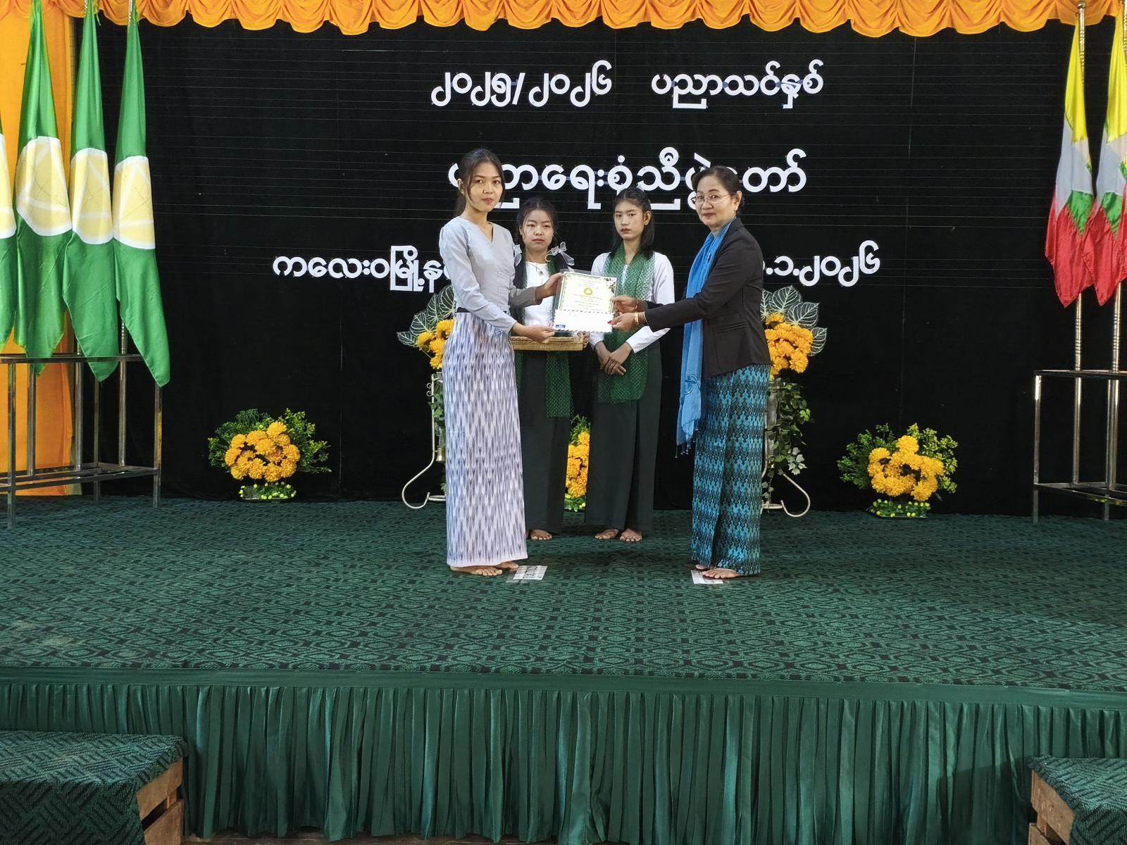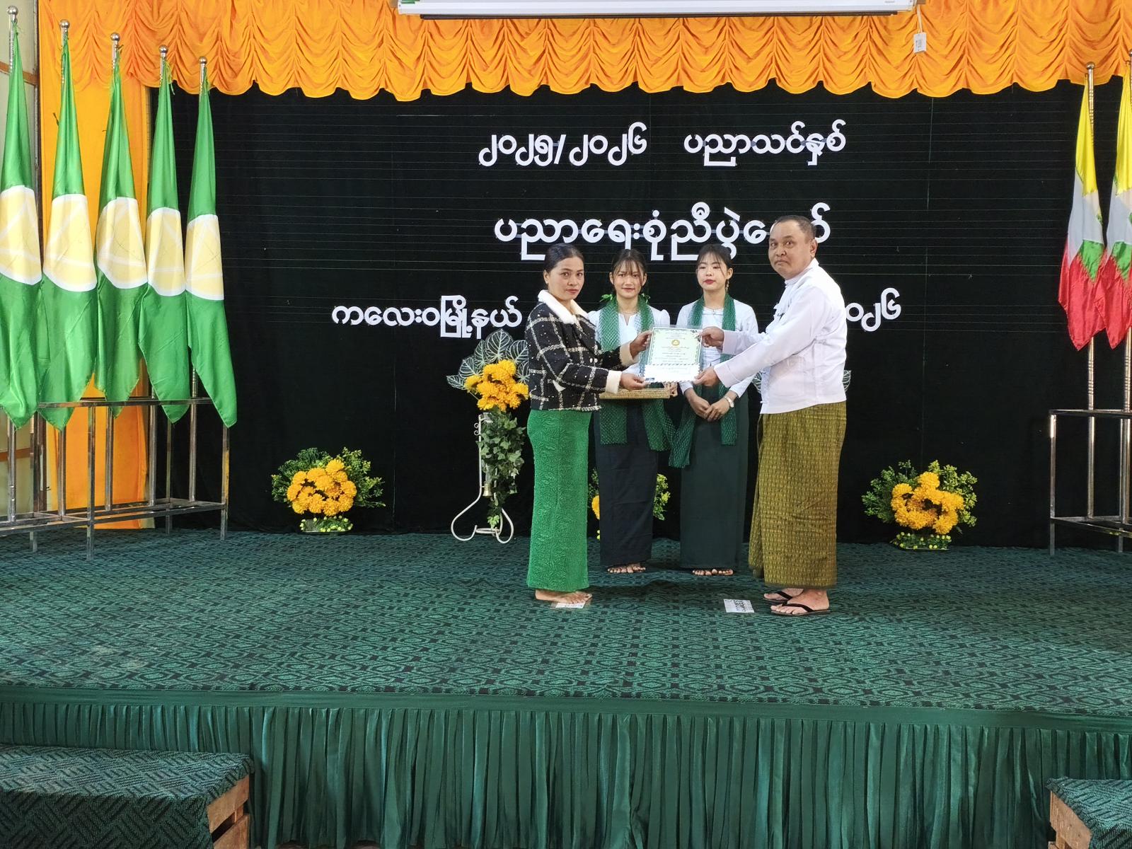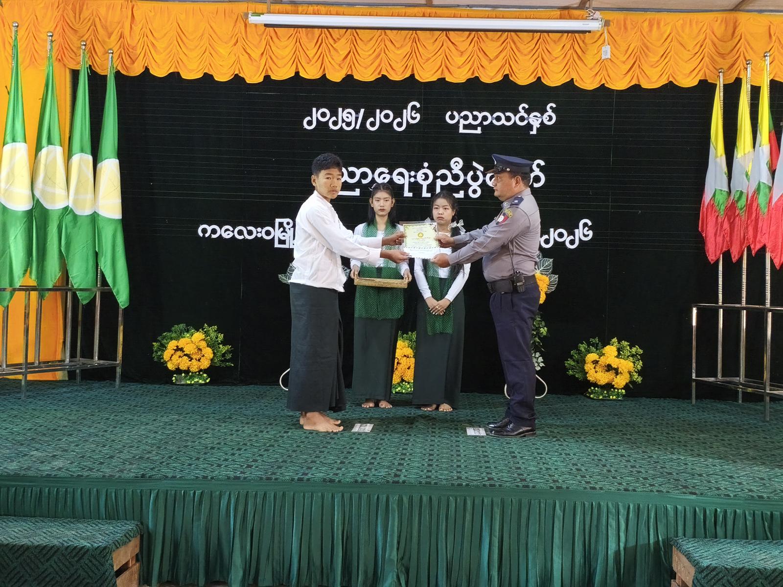 ထို့နောက် ၂၀၂၅ ခုနှစ် ဇွန်လတွင်ကျင်းပခဲ့သော တက္ကသိုလ်ဝင်စာမေးပွဲ၌ ဂုဏ်ထူးရရှိခဲ့သော ကျောင်းသား ကျောင်းသူများနှင့် မြို့နယ်အဆင့် မူလတန်း၊ အလယ်တန်း အင်္ဂလိပ်စာ ဘာသာရပ်နှင့် သင်္ချာဘာသာရပ် စွမ်းရည်ပြိုင်ပွဲတို့တွင် ဆုရရှိခဲ့သော ကျောင်းသား/ကျောင်းသူများအား မြို့နယ်စီမံအုပ်ချုပ်ရေးအဖွဲ့ ဥက္ကဋ္ဌနှင့်အဖွဲ့ဝင်များ၊ မြို့နယ်ပညာရေးမှူး၊ ဌာနဆိုင်ရာအကြီးအကဲများနှင့် ကျောင်းအုပ်ဆရာကြီး၊ ဆရာမကြီးတို့က ဆုငွေနှင့် ဂုဏ်ပြုမှတ်တမ်းလွှာများကို အသီးသီးပေးအပ်ချီးမြှင့်ခဲ့ကြောင်း သိရှိရသည်။