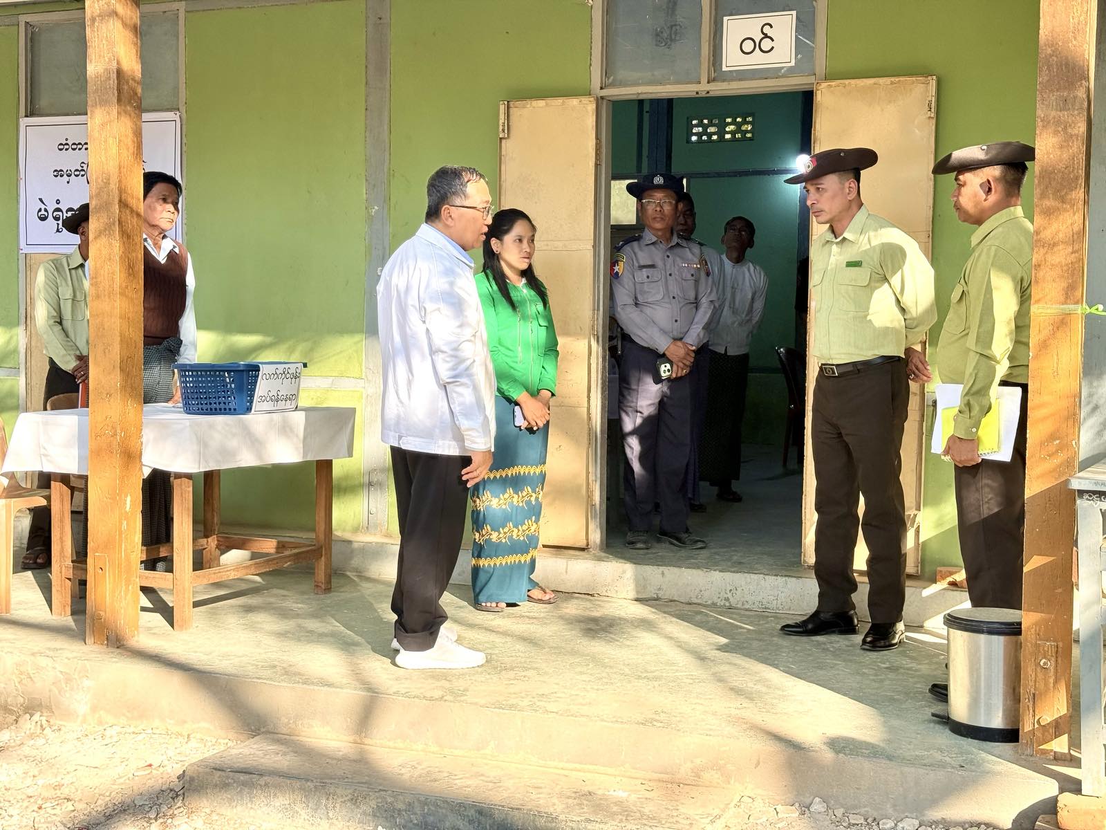 ဆက်လက်၍ ပြည်ထောင်စုရွေးကောက်ပွဲ ကော်မရှင်အဖွဲ့ခွဲဝင်နှင့် တာဝန်ရှိသူများ၊ တံတားဦးခရိုင် စီမံခန့်ခွဲရေးနှင့်အုပ်ချုပ်ရေးကော်မတီ ဥက္ကဋ္ဌ ဦးအောင်ချမ်းငြိမ်းနှင့် တာဝန်ရှိသူများ၊ မြို့နယ်စီမံခန့်ခွဲရေးနှင့်အုပ်ချုပ်ရေးကော်မတီ ဥက္ကဋ္ဌ ဦးဖြိုးဇော်ကိုကိုနှင့် တာဝန်ရှိသူများသည် တံတားဦးမြို့ အမှတ်(၂)ရပ်ကွက် မဲရုံအမှတ်(၁) မြို့မအခြေခံပညာအလယ်တန်းကျောင်းရှိ မဲရုံသို့လည်ကောင်း၊ အမှတ်(၁)ရပ်ကွက်ရှိ အားကစားခန်းမတွင် မဲရုံအမှတ်(၂)နှင့် မဲရုံအမှတ်(၄)တို့တွင် ခင်းကျင်းဆောင်ရွက်ထားသည့် မဲရုံများကို လိုက်လံကြည့်ရှုပြီး လိုအပ်သည်များကို လမ်းညွှန်မှုပြုခဲ့ကြောင်း သိရသည်။