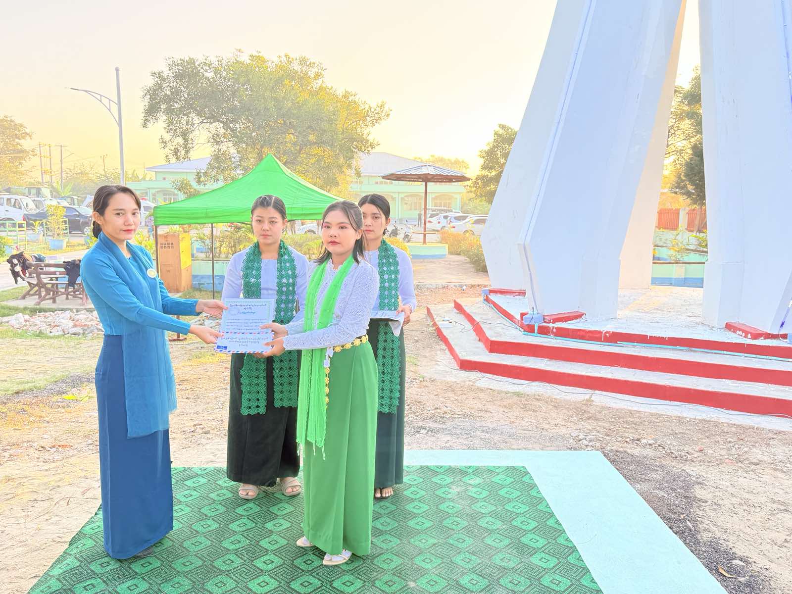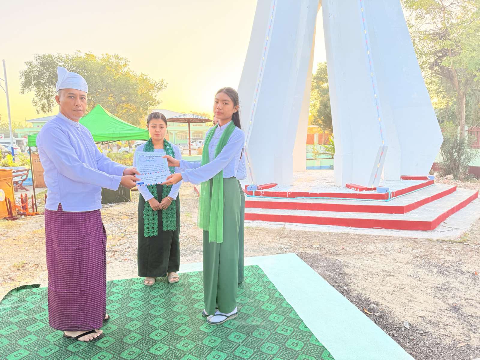 ၎င်းနောက် (၇၈)နှစ်မြောက် လွတ်လပ်ရေးနေ့အထိမ်းအမှတ်အဖြစ် မြို့နယ်အခြေခံပညာဦးစီးဌာနမှ ကြီးမှူးကျင်းပခဲ့သော အခြေခံပညာ အလယ်တန်း၊ အထက်တန်း၊ စာစီစာကုံးပြိုင်ပွဲနှင့် ကဗျာပြိုင်ပွဲများတွင် ဆုရရှိသော ကျောင်းသား၊ ကျောင်းသူများအား မြို့နယ်စီမံခန့်ခွဲရေးနှင့်အုပ်ချုပ်ရေးကော်မတီဥက္ကဋ္ဌ ဦးဗိုလ်အောင်မောင်မောင်၊ အဖွဲ့၀င် (၁) ဗိုလ်မှူးပြည့်ဖြိုးအောင်နှင့်အဖွဲ့၀င်များက ဆုများအသီးသီးပေးအပ် ချီးမြှင့်ခဲ့ကြောင်း သိရပြီး မြို့နယ်ပြန်ကြားရေးနှင့်ပြည်သူ့ဆက်ဆံရေးဦးစီးဌာနမှ ဝန်ထမ်းများက ပြန်ကြားရေးနှင့်ပြည်သူ့ဆက်ဆံရေးဦးစီးဌာနမှ (အခမဲ့)ထုတ်ဝေသော (၇၈)နှစ်မြောက် လွတ်လပ်ရေးနေ့အထိမ်းအမှတ် သတင်းစကားလက်ကမ်းစာစောင်များကို တက်ရောက်လာသူများအား (အခမဲ့) ဖြန်ဝေပေးခဲ့ကြောင်း သိရသည်။