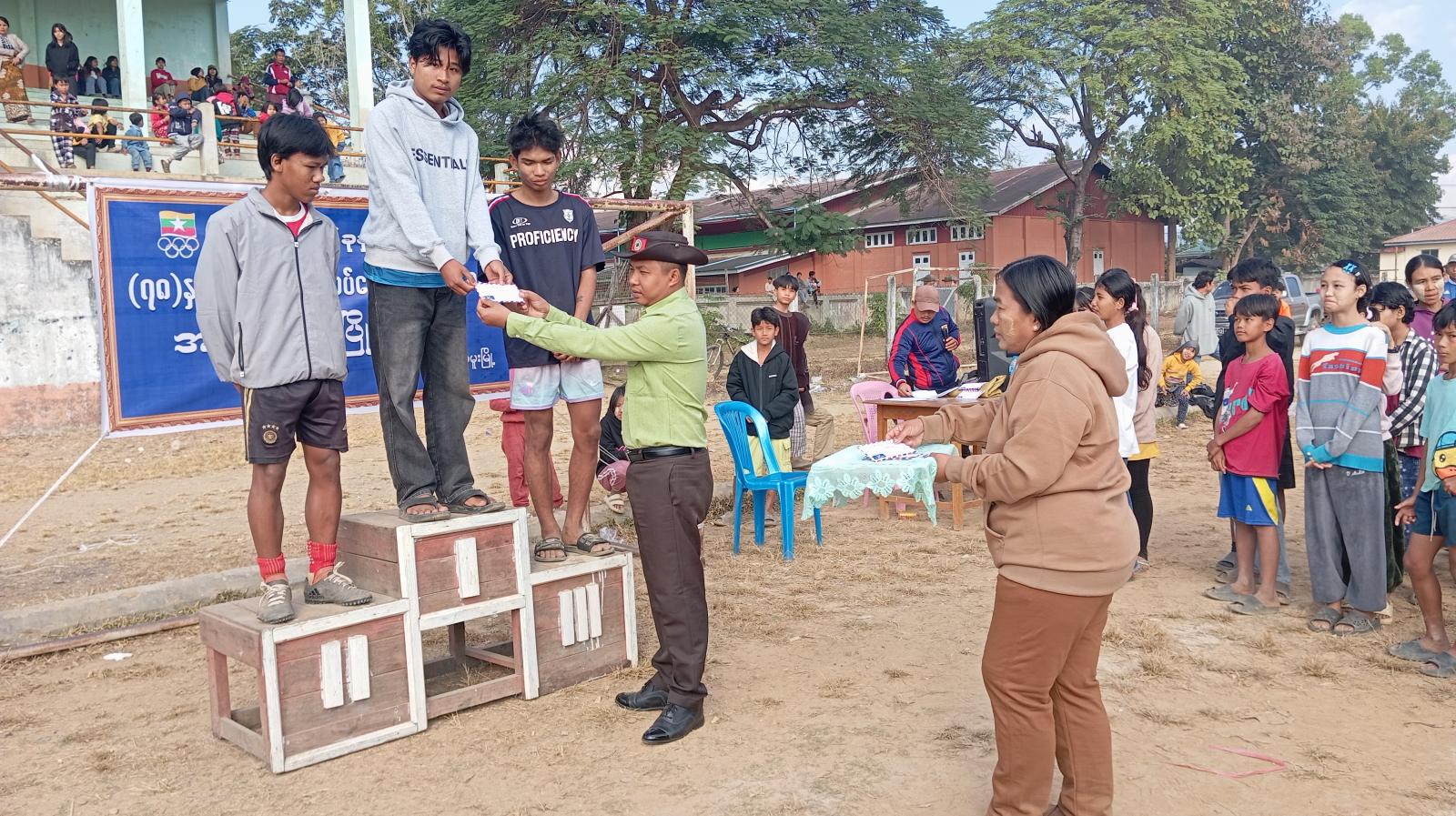 ဆက်လက်၍ ဆုချီးမြှင့်ပွဲ ကျင်းပရာပြိုင်ပွဲတွင်ဆုရရှိကြသည့် ကျောင်းသား/ကျောင်းသူများအား မြို့နယ်စီမံခန့်ခွဲရေးနှင့် အုပ်ချုပ်ရေးကော်မတီဥက္ကဋ္ဌ ဦးအောင်ကျော်မိုးနှင့် အဖွဲ့ဝင်များမှ ဆုများအသီးသီးပေးအပ်ချီးမြှင့်ခဲ့ကြသည်။
