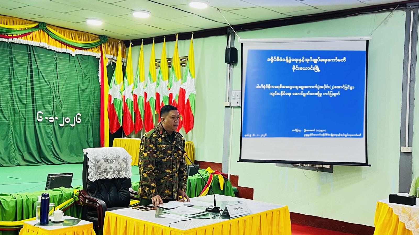 ဦးစွာ အမှတ်(၁၈)စစ်ဆင်ရေးကွပ်ကဲမှုဌာနချုပ်၊ စစ်ဆင်ရေးကွပ်ကဲရေးမှူးက အမှာစကားပြောကြားပြီး ခရိုင်စီမံခန့်ခွဲရေးနှင့်အုပ်ချုပ်ရေးကော်မတီဥက္ကဋ္ဌ ခရိုင်အုပ်ချုပ်ရေးမှူး ဦးဝေမောင်က ရွေးကောက်ပွဲအပိုင်း(၂) အောင်မြင်စွာကျင်းပနိုင်ရေး ဆောင်ရွက်ထားရှိမှုအခြေအနေအား ရှင်းလင်းတင်ပြသည်။ ထို့နောက် တက်ရောက်လာသူများက ပါတီစုံဒီမိုကရေစီအထွေထွေရွေးကောက်ပွဲအပိုင်း(၂) အောင်မြင်ရေး ဆွေးနွေးတင်ပြပြီး အမှတ်(၁၈)စစ်ဆင်ရေးကွပ်ကဲမှုဌာနချုပ်၊ စစ်ဆင်ရေးကွပ်ကဲရေးမှူးက နိဂုံးချုပ်စကား ပြောကြားခဲ့သည်။