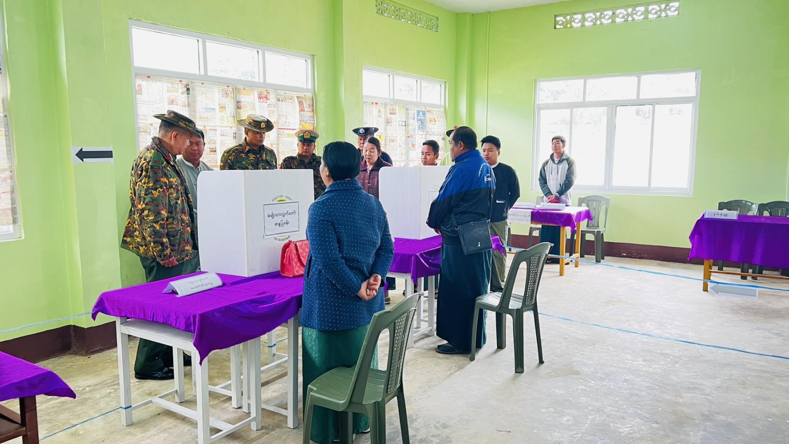 ယင်းနောက် အမှတ်(၁၈)စစ်ဆင်ရေးကွပ်ကဲမှုဌာနချုပ်၊ စစ်ဆင်ရေးကွပ်ကဲရေးမှူးက မဲရုံမှူး၊ ဒုတိယမဲရုံမှူးများ MEVM စက် လက်တွေ့အသုံးပြုခြင်းသင်တန်းပေးနေမှုနှင့် မဲရုံကြိုတင်ပြင်ဆင်ထားရှိမှုတို့ကို ကွင်းဆင်းကြည့်ရှုပြီး လိုအပ်သည်များ ပေါင်းစပ်ဆောင်ရွက်ပေးခဲ့ကြောင်း သိရသည်။
