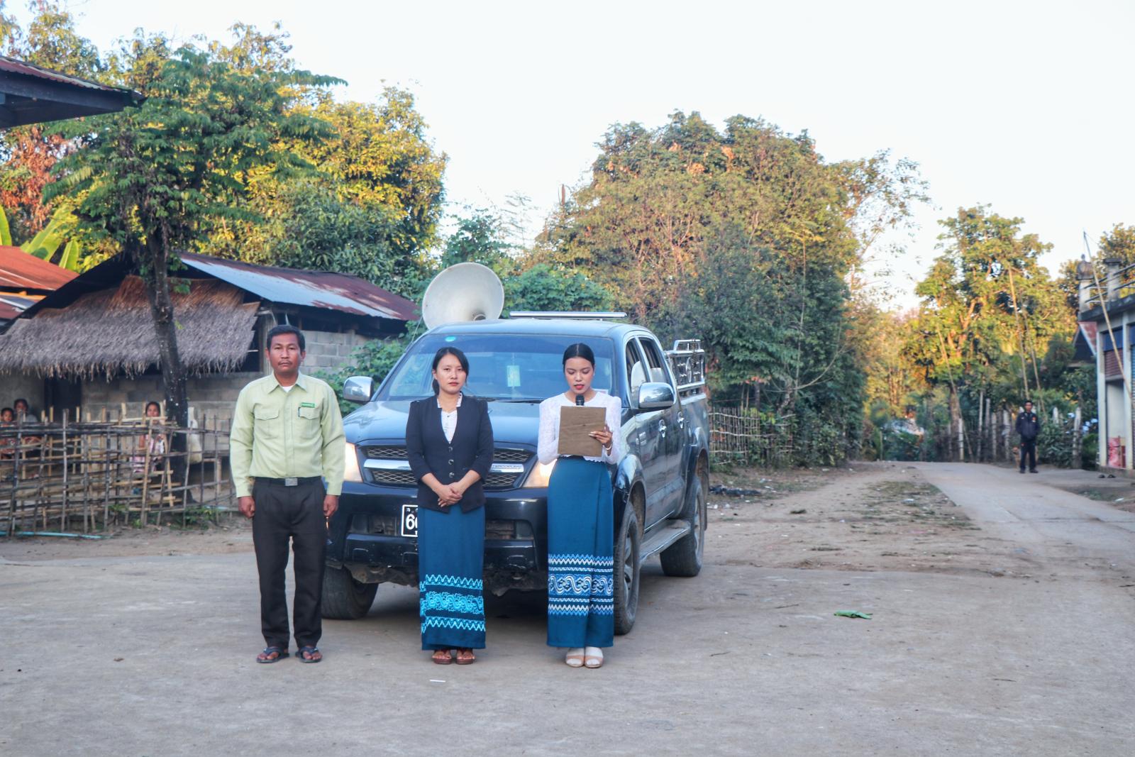 ထိုသို့ လှည့်လည်အသိပေးနှိုးဆော်ရာတွင် မြို့နယ်အထွေထွေအုပ်ချုပ်ရေးဦးစီးဌာမှဝန်ထမ်းများ၊ မြို့နယ်ပြန်ကြားရေးနှင့်ပြည်သူ့ဆက်ဆံရေးဦးစီးဌာနမှဝန်ထမ်းများက ဝမ်မိုင်၊ ဈေးတန်းရပ်ကွက်၊ ဟိုးနား၊ ဝမ်ပုံ၊ နားမွန်း၊ နားလီ၊ ယန်းခမ်း၊ ပါပူးကျေးရွာများသို့ လှည့်လည်၍ မြန်မာ၊ ရှမ်း၊ အာခါ၊ လားဟူတိုင်းရင်းသားဘာသာစကားများဖြင့် ရွေးကောက်ပွဲကျင်းပမည့်အခြေအနေများ၊ မဲဆန္ဒရှင်ပြည်သူများမဲရုံများသို့လာရောက်ပါက နိုင်ငံသားစိစစ်ရေးကတ်ပြားယူဆောင်လာရေး၊ မဲဆန္ဒရှင်များလိုက်နာရမည့်အချက်များကို အသံချဲ့စက်ဖြင့် လှည့်လည်အသိပေးနှိုးဆော်ခဲ့ကြောင်း သိရသည်။