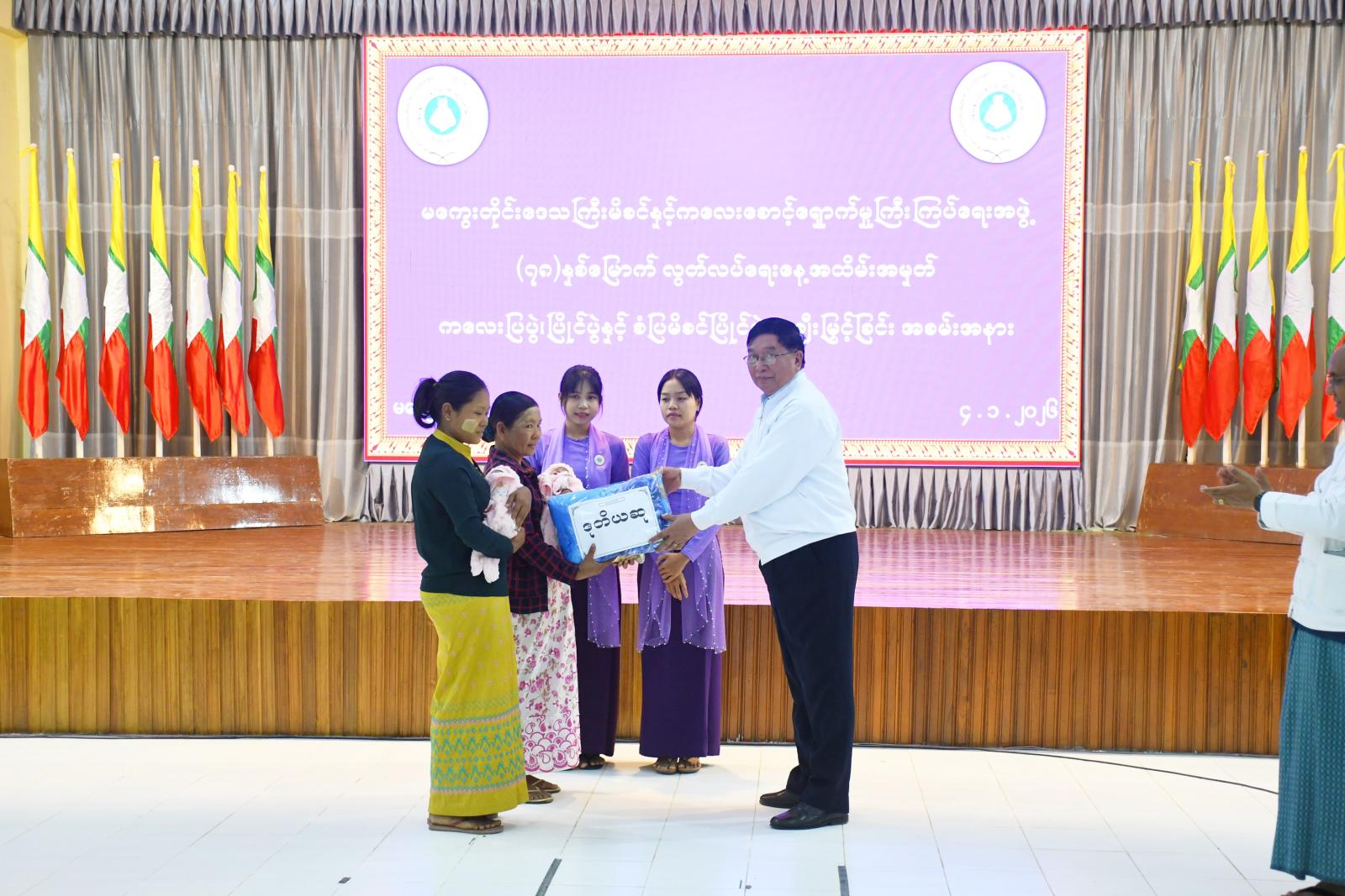 ဆက်လက်၍ မကွေးတိုင်းဒေသကြီးဝန်ကြီးချုပ် ဦးတင့်လွင်၊ မိခင်နှင့်ကလေးစောင့်ရှောက်မှုကြီးကြပ်ရေးအဖွဲ့နာယက ဒေါ်ဝင်းဝင်းမြင့်နှင့် အစိုးရအဖွဲ့ဝင်ဝန်ကြီးများက (၇၈)နှစ်မြောက် လွတ်လပ်ရေးနေ့အထိမ်းအမှတ်အဖြစ် ကျင်းပသောကလေးပြပွဲ၊ ပြိုင်ပွဲများတွင် စံပြမိခင်၊ ကလေးများကို မွေးစမှ(၆)လအထိ၊ ၆ လမှ ၁၂ လအထိ၊ ၁၂ လမှ(၁၈)လအထိ၊ ၁၈ လမှ(၂၄)လအထိ၊ မွေးစမှ ၁၂လအမွှာ၊ မွေးစမှ ၂၄ လအမွှာ၊ စံပြမိခင်ဆုရရှိကြသည် ကလေးများ နှင့်မိခင်တို့အား ပထမ၊ ဒုတိယ၊ တတိယ၊ စတုတ္ထဆု စုစုပေါင်း(၂၈)ဆုချီးမြှင့်ခြင်းနှင့် ပါဝင်ယှဉ်ပြိုင်ကြသည့် ကလေး၊ မိခင်များအား အာဟာရပစ္စည်းများ လက်ဆောင်ပေးအပ်ခြင်းနှင့် ပြိုင်ပွဲဝင်ကလေးများအား ကျန်းမာရေးအကဲဖြတ်စစ်ဆေးပေးသော ဆရာဝန်များအား လက်ဆောင်ပစ္စည်းများနှင့် ဖျော်ဖြေတင်ဆက်ခဲ့ကြသည့် သားငယ်၊ သမီးငယ်လေးများအား တိုင်းဒေသကြီးဝန်ကြီးချုပ်က ဂုဏ်ပြုဆုငွေများပေးအပ်ခဲ့ကြောင်း သိရသည်။