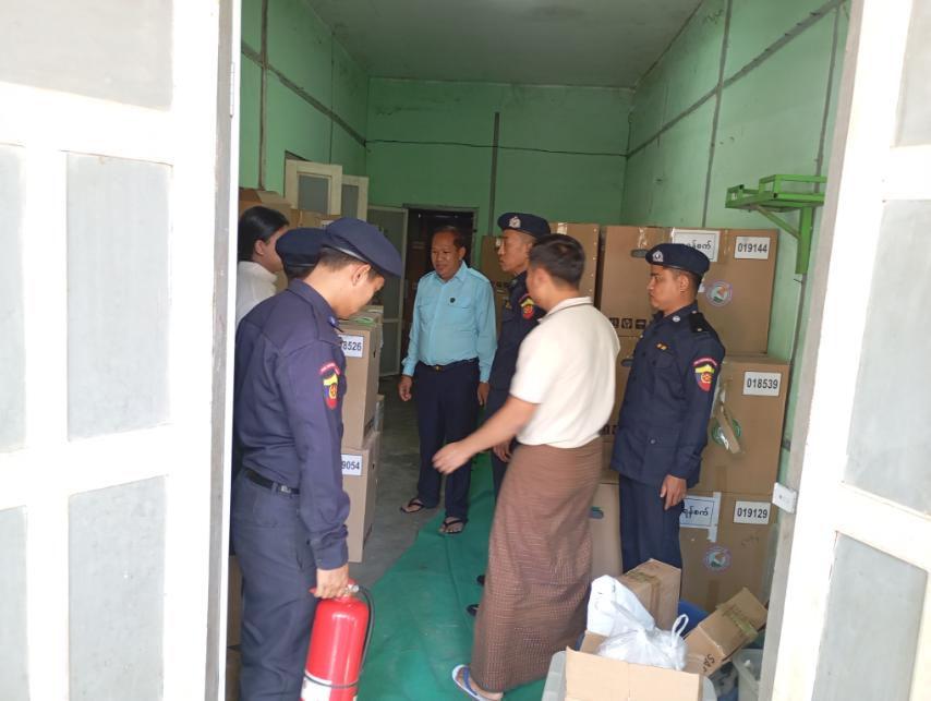 ထိုသို့ လိုက်လံစစ်ဆေးခဲ့ရာတွင်မြို့ နယ်မီးသတ်ဦးစီးဌာနဦးစီးအရာရှိ ဦးဌေးမော်နှင့်တပ်ဖွဲ့ဝင်များကရပ်ကွက်/ကျေးရွာအုပ်စုများတွင် မဲရုံပြုလုပ်မည့် အခြေခံပညာစာသင်ကျောင်းများ၊ ဓမ္မာရုံများတွင် လျှပ်စစ်ဝါယာကြိုးသွယ်တန်းထားရှိမှုအခြေအနေများ၊ မဲရုံအတွင်းခန်းများအလင်းရောင်ကောင်းစွာရရှိမှုအခြေအနေများ၊ မီးငြိမ်းသတ်ရေးပစ္စည်းများနှင့် မီးသတ်ဆေးဘူးများထားရှိခြင်းရှိ/မရှိ လိုက်လံစစ်ဆေးခြင်းနှင့် မြို့နယ်အထွေထွေအုပ်ချုပ်ရေးဦးစီးဌာနရုံးအတွင်းထားရှိသည့် မြန်မာအီလတ်ထရောနစ်မဲပေးစက်များ မီးဘေးလုံခြုံရေးရှိ/မရှိ စစ်ဆေးဆောင်ရွက်ခဲ့ကြကြောင်း သိရသည်။