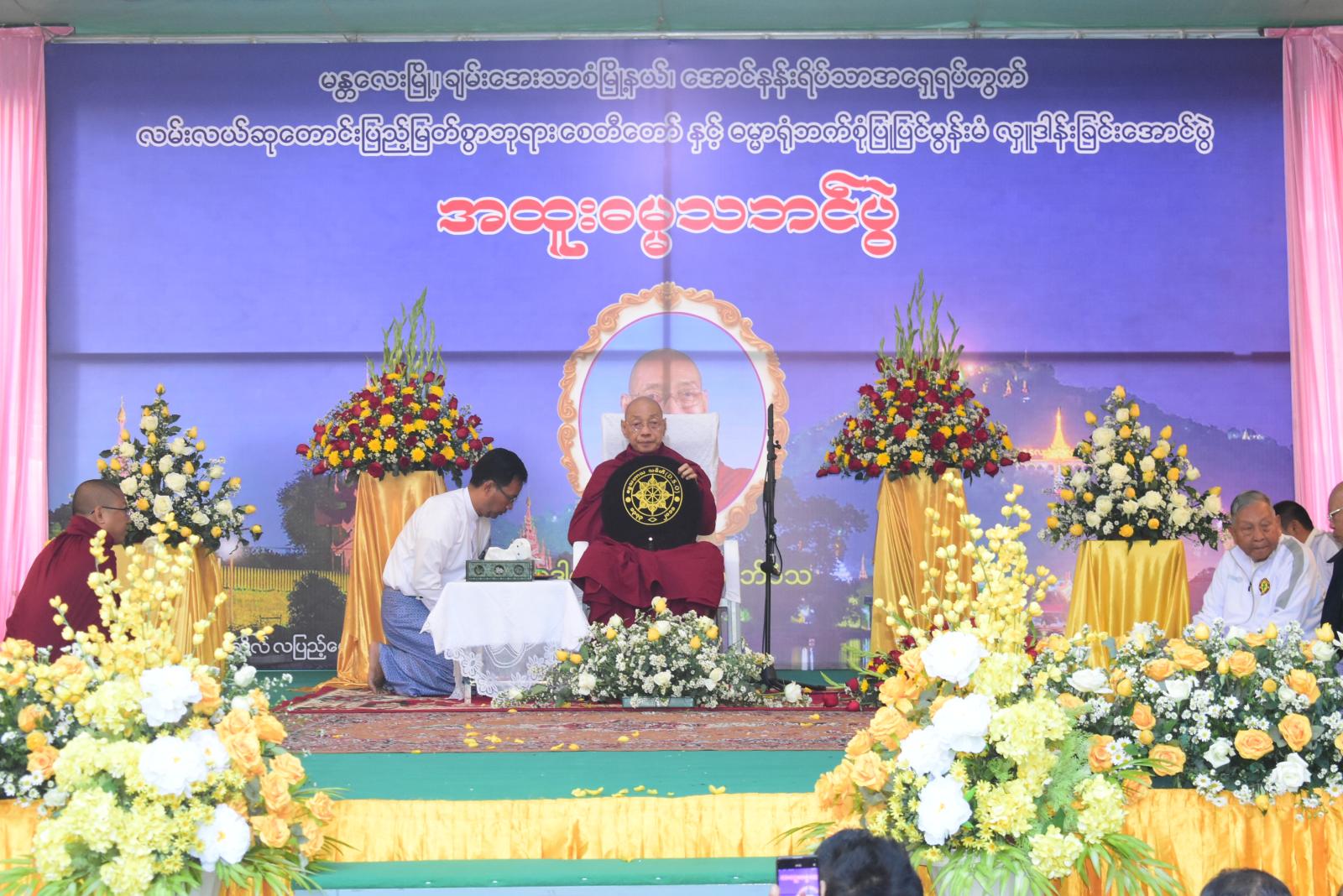 အထူးဓမ္မသဘင်ပွဲအခမ်းအနားကို နမောတဿ သုံးကြိမ်ရွတ်ဆိုကာ ဖွင့်လှစ်ခဲ့ပြီး ပါမောက္ခချုပ်ဆရာတော် ဒေါက်တာဘဒ္ဒန္တနန္ဒမာလာဘိဝံသထံမှ ငါးပါးသီလ ခံယူကာ ပါမောက္ခချုပ်ဆရာတော်ကြီး ဟောကြားသော နိဗ္ဗာန်ရောက်ကြောင်း တရားတော်များ နာယူခဲ့ကြသည်။ ထို့နောက် ပါမောက္ခချုပ်ဆရာတော်ကြီးအား အလှူရှင်များက လှူဖွယ်ဝတ္တုငွေများနှင့် လှူဖွယ်ပစ္စည်းများ ဆပ်ကပ်လှူဒါန်းခဲ့ကြပြီး လှူဒါန်းမှုများအတွက် ရေစက်ချအမျှပေးဝေခဲ့ကြောင်း သိရသည်။