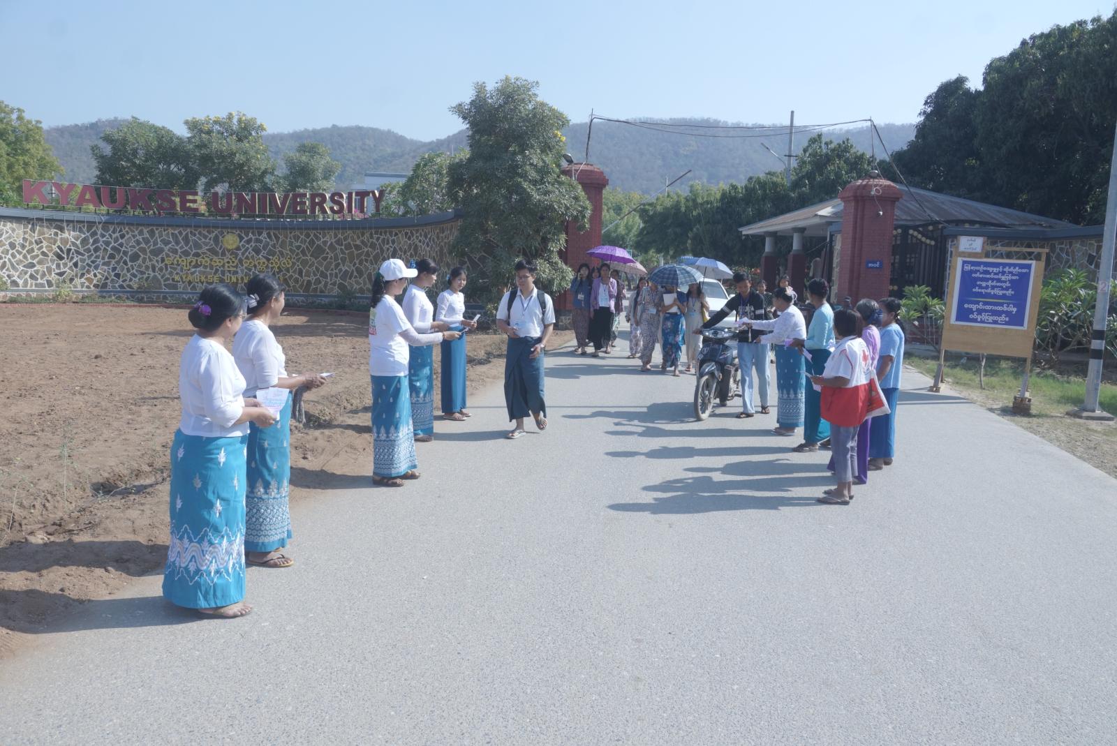 မန္တလေးတိုင်းဒေသကြီး၊ ကျောက်ဆည်ခရိုင်၊ စဉ့်ကိုင်မြို့နယ်၌ ၂၀၂၆ ခုနှစ်၊ ဇန်နဝါရီလ ၁၁ ရက်နေ့တွင် ကျင်းပပြုလုပ်မည့် ပါတီစုံဒီမိုကရေစီအထွေထွေရွေးကောက်ပွဲတွင် အသက် (၁၈) နှစ်ပြည့်ပြီး ဆန္ဒမဲပေးပိုင်ခွင့်ရှိသူများ နိုင်ငံသားအခွင့်အရေး ဆုံးရှုံးမှုမရှိစေရေး ပြည်သူများအားလုံး ပူးပေါင်းပါဝင်၍ လွတ်လပ်စွာ ဆန္ဒမဲပေးနိုင်ရေး၊ မြို့နယ်အတွင်း မဲဆန္ဒရှင်ပြည်သူများ ရာနှုန်းပြည့် မဲပေးနိုင်ရေး တို့ကို ရည်ရွယ်ကာ ဒို့အတူတူ မဲပေးကြမယ် အသိပညာပေး လက်ကမ်းစာစောင်များကို ဇန်နဝါရီလ ၇ ရက်နေ့ မွန်းလွဲ ၂ နာရီက လူစည်ကားရာနေရာ စဉ့်ကိုင်မြို့ဝင် မီးပွိုင့်လမ်းဆုံအနီး၊ ရန်နိုင်ရပ်ကွက်၊ ဗိုလ်တေဇလမ်း၊ ရန်နိုင်တံတားတစ်လျှောက် ခရီးသွားလာ ဒေသခံပြည်သူများ၊ ကျောက်ဆည်တက္ကသိုလ်ရှိ ဆရာ/ဆရာမများနှင့် ကျောင်းသား/ကျောင်းသူများသို့ ဖြန့်ဝေပေးခဲ့သည်။