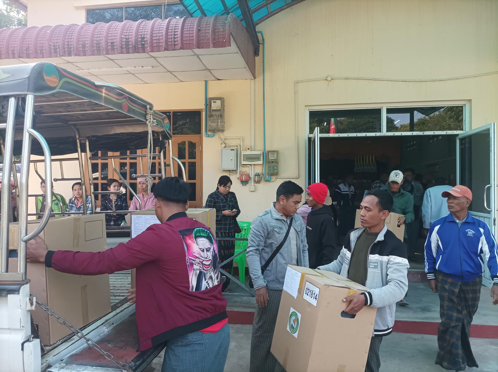 ထိုသို့ဖြန့်ဝေပို့ဆောင်ရာတွင် မြို့နယ်စီမံခန့်ခွဲရေးနှင့်အုပ်ချုပ်ရေးကော်မတီဥက္ကဋ္ဌနှင့် အဖွဲ့ဝင်များ၊ ခရိုင်နှင့် မြို့နယ်ရွေးကောက်ပွဲကော်မရှင်အဖွဲ့ခွဲ အဖွဲ့ဝင်များနှင့် ဌာနဆိုင်ရာဝန်ထမ်းများက မဲရုံအလိုက် မြန်မာအီလက်ထရောနစ်မဲပေးစက်(MEVM) မဲပေးစက်များနှင့် မဲရုံသုံးပစ္စည်းများ စနစ်တကျထုတ်ပေးခဲ့ကြပြီး လုံခြုံရေးတပ်ဖွဲ့ဝင်များနှင့် တာဝန်ရှိသူတို့က သက်ဆိုင်ရာ မဲရုံများသို့အရောက် လိုက်လံပို့ဆောင်ပေးခဲ့ကြသည်။