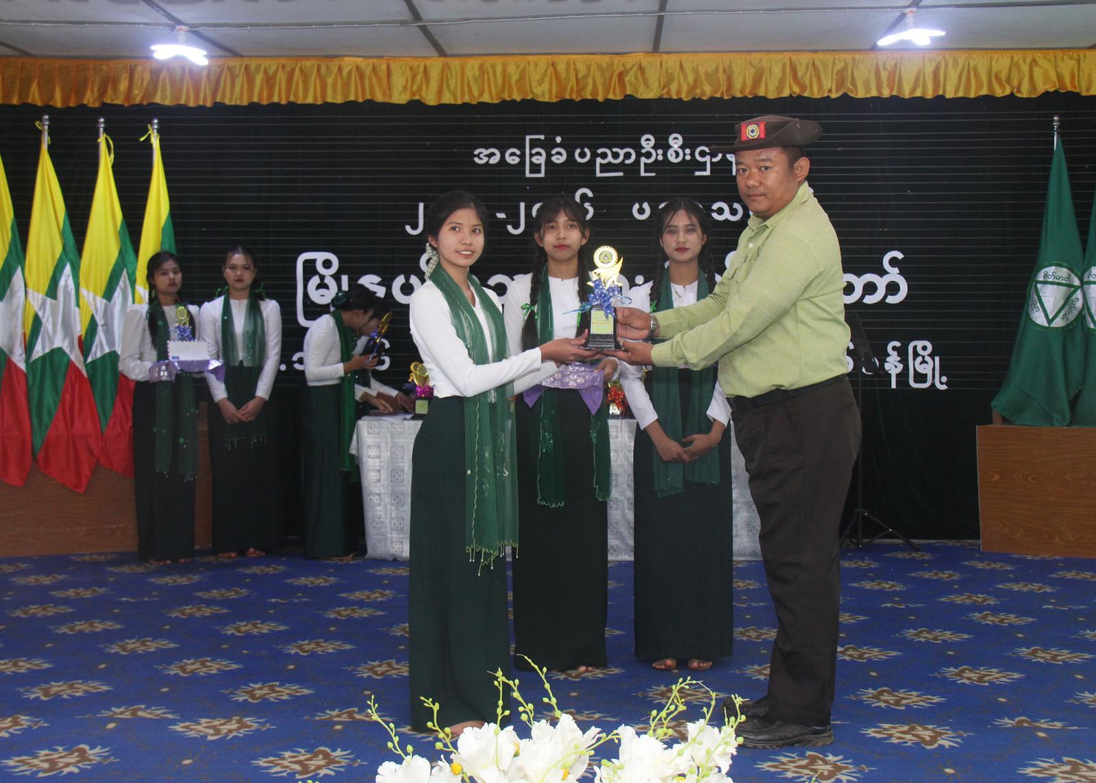 ထို့နောက် မြို့နယ်စီမံခန့်ခွဲရေးနှင့်အုပ်ချုပ်ရေးကော်မတီဥက္ကဋ္ဌ ဦးနေမျိုးထွန်းက ပြည်နယ်အဆင့် ဆို၊ က၊ ရေး၊ တီး ပြိုင်ပွဲတွင် ဆုရရှိသော ကျောင်းသား၊ ကျောင်းသူများနှင့် ပြည်နယ်အဆင့် အားကစားပြိုင်ပွဲများတွင် ဆုရရှိသော ကျောင်းသား၊ ကျောင်းသူများကို ဆုတံဆိပ်နှင့်ဂုဏ်ပြုဆုငွေများ ပေးအပ်ချီးမြှင့်ခဲ့သည်။