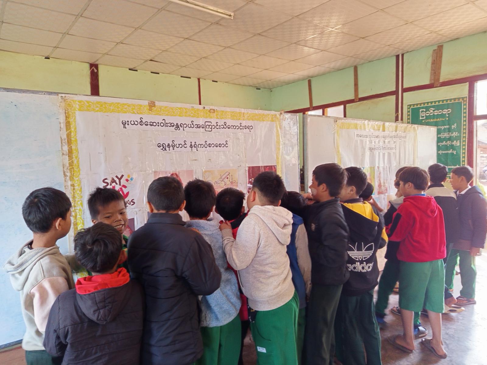အဆိုပါ အသိပညာပေးလုပ်ငန်းတွင် ပြန်ကြားရေးနှင့်ပြည်သူ့ဆက်ဆံရေးဦးစီးဌာနမှ ကျောင်းသူကျော/င်းသားများ လေ့လာနိုင်ရန်နှင့် စာဖတ်ရှိန်မြှင့်တင်ရေး၊ ကလေးအလုပ်သမားကာကွယ်ရေး၊ သဘာဝပတ်ဝန်းကျင်ထိမ်းသိမ်းရေးနံရံကပ်စာစောင်များ၊ ရသစာအုပ်စာစောင်တို့ကို ခင်းကျင်းပြသရာ ကျောင်းသား၊ ကျောင်းသူများမှ စိတ်ပါ၀င်စားစွာကြည့်ရှုလေ့လာခဲ့ကြောင်း သိရသည်။