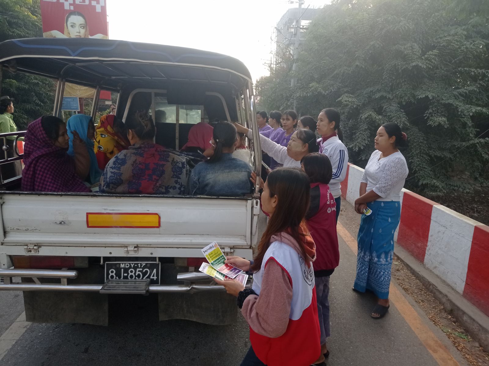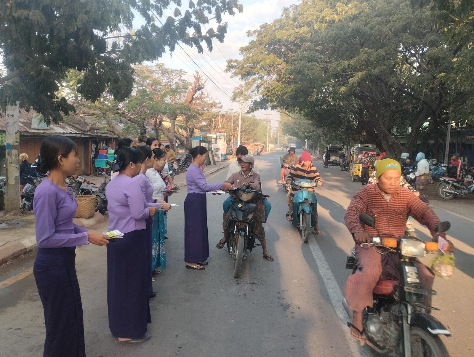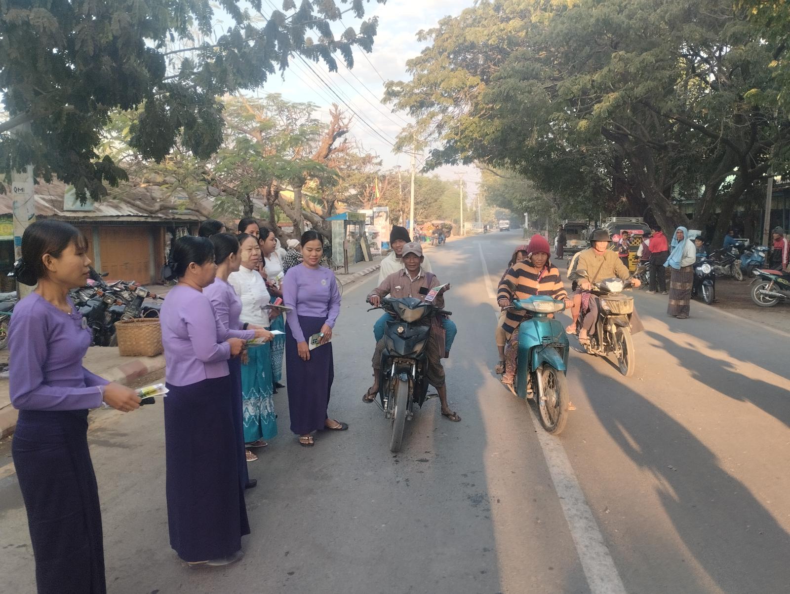 မန္တလေးတိုင်းဒေသကြီး၊ ကျောက်ဆည်ခရိုင် စဉ့်ကိုင်မြို့နယ်၌ ဇန်နဝါရီ ၁၁ ရက်တွင်ကျင်းပမည့် ပါတီစုံဒီမိုကရေစီ အထွေထွေရွေးကောက်ပွဲတွင် အသက်(၁၈)နှစ်ပြည့်ပြီး ဆန္ဒမဲပေးပိုင်ခွင့်ရှိသူများ နိုင်ငံသားအခွင့်အရေးဆုံးရှုံးမှုမရှိစေရေး ပြည်သူများအားလုံး ပူးပေါင်း ပါဝင်၍ လွတ်လပ်စွာ ဆန္ဒမဲပေးနိုင်ရေး၊ မြို့နယ်အတွင်းမဲဆန္ဒရှင် ပြည်သူများ ရာနှုန်းပြည့် မဲပေးနိုင်ရေး ရည်ရွယ်ကာ “ဒို့အတူတူ မဲပေးကြမယ်” အသိပညာပေး လက်ကမ်းစာစောင်များကို ဇန်နဝါရီ ၁၀ ရက် ၇ နာရီ ခွဲက လူစည်ကားရာနေရာ စဉ့်ကိုင်မြို့မ ဈေးအတွင်းအပြင် ဈေးရောင်း/ ဈေးဝယ်များ၊ ရန်နိုင်ရပ်ကွက်၊ ဗိုလ်တေဇလမ်း၊ ရန်နိုင်တံတား တစ်လျှောက် ခရီးသွားလာ ဒေသခံပြည်သူများသို့ ဖြန့်ဝေပေးခဲ့သည်။