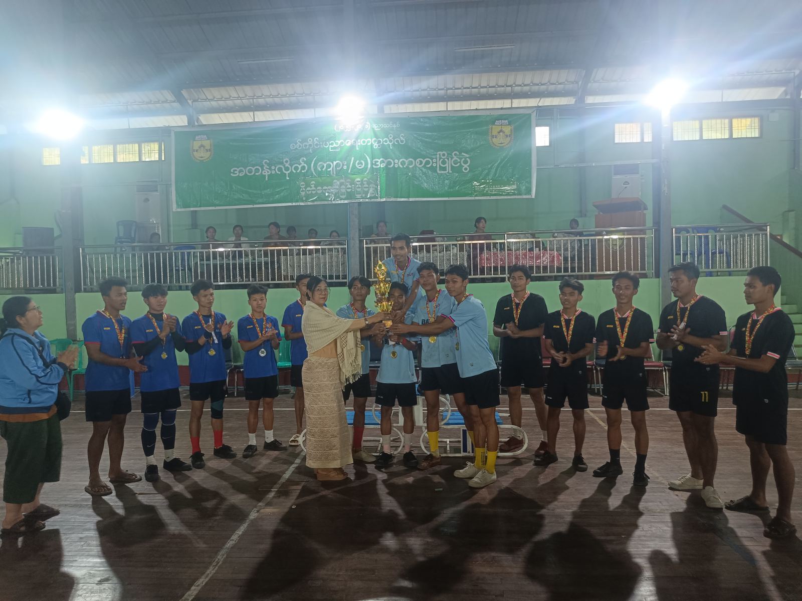 စစ်ကိုင်းပညာရေးတက္ကသိုလ်တွင် ၂၀၂၅-၂၀၂၆ ပညာသင်နှစ် အတန်းအလိုက် ပိုက်ကျော်ခြင်းပြိုင်ပွဲ ဆုချီးမြှင့်ပွဲအခမ်းအနားကို ယမန်နေ့ညနေပိုင်းက အဆိုပါတက္ကသိုလ်ရှိ အားကစားခန်းမ၌ ကျင်းပပြုလုပ်ရာ ပါမောက္ခချုပ် ဒေါက်တာအေးသက်သက်ဝင်း၊ ဒုတိယပါမောက္ခချုပ်များ၊ ပါမောက္ခဌာနမှူးများ၊ သင်ကြား၊ စီမံဆရာ၊ ဆရာမများ၊ ကျောင်းသား၊ ကျောင်းသူများ၊ ပြိုင်ပွဲဝင်အားကစားသမားများ တက်ရောက်ကြသည်။