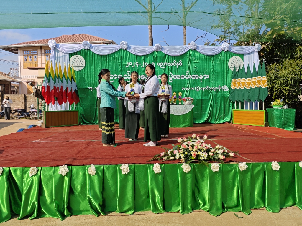 ထို့နောက် ၂၀၂၄-၂၀၂၅ ပညာသင်နှစ်တွင် ထူးချွန်စွာအတန်းတက်သွားခဲ့ကြသော ကျောင်းသား၊ ကျောင်းသူလေးများ၊ ကာယ၊ ဉာဏနှင့် ရှမ်းတိုင်းရင်းသားစာပေထူးချွန်ဆုများကို မြို့နယ်စီမံခန့်ခွဲရေးနှင့်အုပ်ချုပ်ရေးကော်မတီအဖွဲ့ဝင် ဦးငိုပွယ်၊ တာဝန်ခံမြို့နယ်ပညာရေးမှူးနှင့် တာဝန်ရှိသူများက ဆုများအသီးသီးချီးမြှင့် ပေးအပ်ခဲ့ကြပြီး ကျောင်းသား ၊ ကျောင်းသူလေးများက အကပဒေသာများဖြင့် ဖျော်ဖြေပေးခဲ့ကြောင်းသိရသည်။