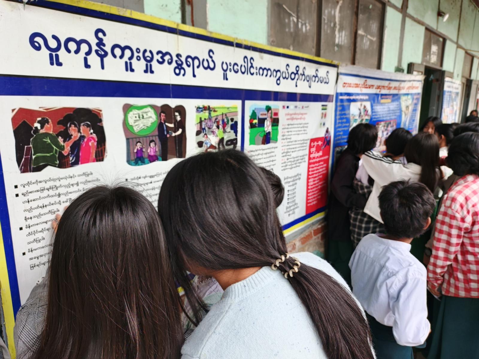 ထို့နောက် မြို့နယ်ပြန်ကြားရေးနှင့်ပြည်သူ့ဆက်ဆံရေးဦးစီးဌာနမှ လူငယ်ရေးရာအသိ ပညာပေးနံရံကပ် စာစောင်များ၊ မူးယစ်ဆေးဝါးတာဆီးကာကွယ်ရေး အသိပညာပေး နံရံကပ်စာစောင်များ၊ ကလေးအလုပ်သမားပပျောက်ရေး အသိပညာပေးနံရံကပ်စာစောင် များနှင့် သုတ၊ ရသစာအုပ်စာစောင်များကို ပြသခဲ့ရာ ကျောင်းသား၊ ကျောင်းသူများမှ စိတ်ပါဝင်စားစွာ လေ့လာကြည့်ရှုခဲ့ကြကြောင်း သိရသည်။
