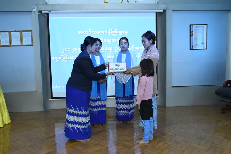 ဆက်လက်ပြီး မန္တလေးတိုင်းဒေသကြီးလူမှုဖူလုံရေးရုံး၊ တိုင်းဒေသကြီးတာဝန်ခံအရာရှိက ဆင်မင်း ဘိလပ်မြေစက်ရုံမှ အာမခံအလုပ်သမား ဦးအောင်ကိုကို၏ ကျန်ရစ်သူ ငွေလုံးငွေရင်း အကျိုးခံစားခွင့် ငွေ ၉,၂၄၀,၀၀၀ ကျပ်အား ဇနီးဖြစ်သူ ဒေါ်သင်းသင်းအေးအားလည်းကောင်း၊ MC.Jalux Airport Service CO;Ltd မှ အာမခံအလုပ်သမား ဦးသီဟမျိုးငြိမ်း၏ ကျန်ရစ်သူ ငွေလုံးငွေရင်း အကျိုးခံစားခွင့် ငွေကျပ် ၁၅,၀၀၀,၀၀၀ ကျပ်အား ဇနီးဖြစ်သူ ဒေါ်ကေသီနွယ်တို့အား ပေးအပ်ခဲ့ကြောင်း သိရှိရပြီး ဆင်မင်းဘိလပ်မြေစက်ရုံမှူး ဦးခင်မောင်ဆွေနှင့် MC.Jalux Airport Service CO;Ltd မှ ဌာနမှူး ဒေါ်ကေသွယ်တို့က ကျေးဇူးတင်စကား ပြန်လည်ပြောကြားခဲ့ကြောင်း သိရသည်။