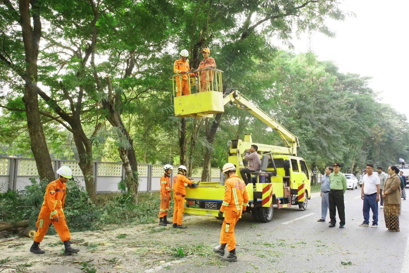အဆိုပါ သစ်ပင်များ အုံ့ဆိုင်နေသဖြင့် အလင်းကောင်းမွန်စွာရရှိစေရေး မလိုအပ်သည့် သစ်ပင်အကိုင်းအခက်များအား ရှင်းလင်းခြင်းကို မိတ္ထီလာခရိုင်စီမံခန့်ခွဲရေးနှင့် အုပ်ချုပ်ရေးကော်မတီဥက္ကဋ္ဌ ဦးအောင်မြင့်ဦးနှင့် တာဝန်ရှိသူများက ကွင်းဆင်းကြည့်ရှုစစ်ဆေးခဲ့ပြီး လိုအပ်သည်များကို ပေါင်းစပ်ဆောင်ရွက်ခဲ့ကြောင်း သိရသည်။