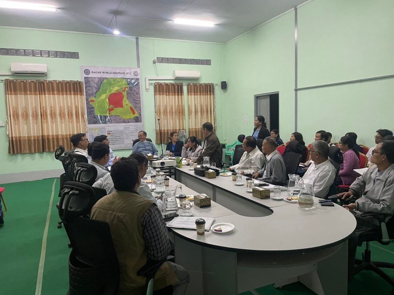 ၂၀၂၆ ခုနှစ်၊ဇန်နဝါရီလ ၁၇ ရက်၊ညနေ ၃ နာရီအချိန်တွင် ရှေးဟောင်းသုတေသနနှင့် အမျိုးသားပြတိုက်ဦးစီးဌာန၊ပုဂံဌာနခွဲရုံးရှိ အစည်းအဝေးခန်းမ၌ ညွှန်ကြားရေးမှူး ဦးညီမွန်း ဦးဆောင်သော အရာထမ်း ၊ အမှုထမ်းများ ၊ မန္တလေးတိုင်းဒေသကြီး ယဉ်ကျေးမှုအမွေအနှစ်များ ကာကွယ်ထိန်းသိမ်းရေးကော်မတီဝင်များနှင့်အိန္ဒိယနိုင်ငံ၊ နယူးဒေလီမြို့ ၊ Archaeological Survey of India (ASI) မှ လာရောက်သည့် Director (၂) ဦးဖြစ်သော Mr. Sh Sundar Paul (Director, Conservation)နှင့် Dr.Manoj Kumar Bhatnagar (Director, Science, S & P)၊ပုဂံတွင်ရောက်ရှိ ပြုပြင်ထိန်းသိမ်းရေးလုပ်ငန်းဆောင်ရွက်နေသည့် ASI အဖွဲ့မှ ပညာရှင် (၄)ဦးတို့နှင့် တွေ့ဆုံဆွေးနွေးခဲ့ကြောင်း သိရသည်။