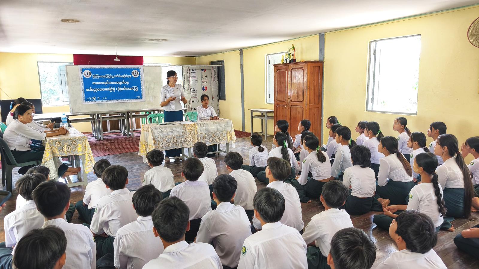 ဟောပြောပွဲတွင် ကျောင်းအုပ်ဆရာမကြီး ဒေါ်မြင့်မြင့်မူက အဖွင့်အမှာစကားပြောကြားပြီး မြို့နယ်ပြန်ကြားရေးနှင့်ပြည်သူ့ဆက်ဆံရေးဦးစီးဌာန ဦးစီးအရာရှိက ကလေးအလုပ်သမားဟူသည် ၎င်း၏ ကလေးဘဝ ရှေ့အလားအလာနှင့် ဂုဏ်သိက္ခာကင်းမဲ့စေပြီး ရုပ်ပိုင်းနှင့်စိတ်ပိုင်းဆိုင်ရာ ဖွံ့ဖြိုးတိုးတက်မှုကို ထိခိုက်နစ်နာသည့် အလုပ်မျိုးတွင် လုပ်ကိုင်နေရသူများကို ဆိုလိုကြောင်း၊ မည်သည့်အလုပ်မျိုးကိုမဆို အသက်(၁၄)နှစ်အောက် ကလေးများအား လုပ်ကိုင်ခွင့်မပြုရန် ဥပဒေများက တင်းကြပ်စွာတားမြစ်ထားကြောင်း၊ အဆိုးဝါးဆုံးပုံစံဖြင့် ခိုင်းစေခြင်းများ၊ ကလေးအလုပ်သမားများ၏ အလုပ်ချိန်များနှင့် အသက်အရွယ်၊ ကလေးအလုပ်သမားများ ပပျောက်ရေး ရည်မှန်းချက် (၃)ရပ် စသည့်အကြောင်းအရာများကို ရှင်းလင်းပြောကြားသည်။