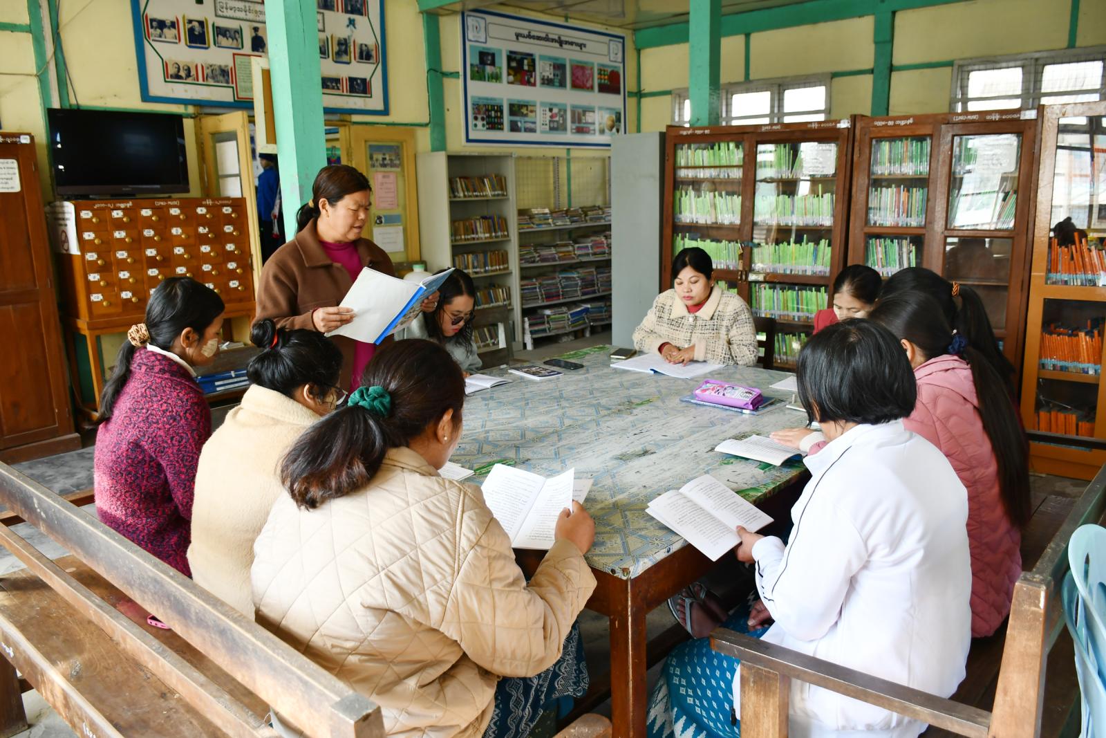 အဆိုပါစာဖတ်ဝိုင်းများကို စာကြည့်တိုက်လုပ်ငန်း စီမံခန့်ခွဲရေး လက်စွဲစာစောင်၊ DLMS အသုံးပြုနည်းလက်စွဲ၊ နိုင်ငံ့ဝန်ထမ်းဥပဒေ/နည်းဥပဒေ၊ ရုံးလုပ်ငန်းလက်စွဲ၊ စံတန်ဖိုးများ၊ ဝန်ထမ်းကျင့်ဝတ်စသည့် စာအုပ်များကို ရုံးဖွင့်သည့်နေ့ နံနက်တိုင်း ဆောင်ရွက်ခြင်းဖြစ်ပြီး ဝန်ထမ်းများက အလှည့်ကျ ဖတ်ရှုဆွေးနွေးကြကြောင်း သိရှိရပါသည်။