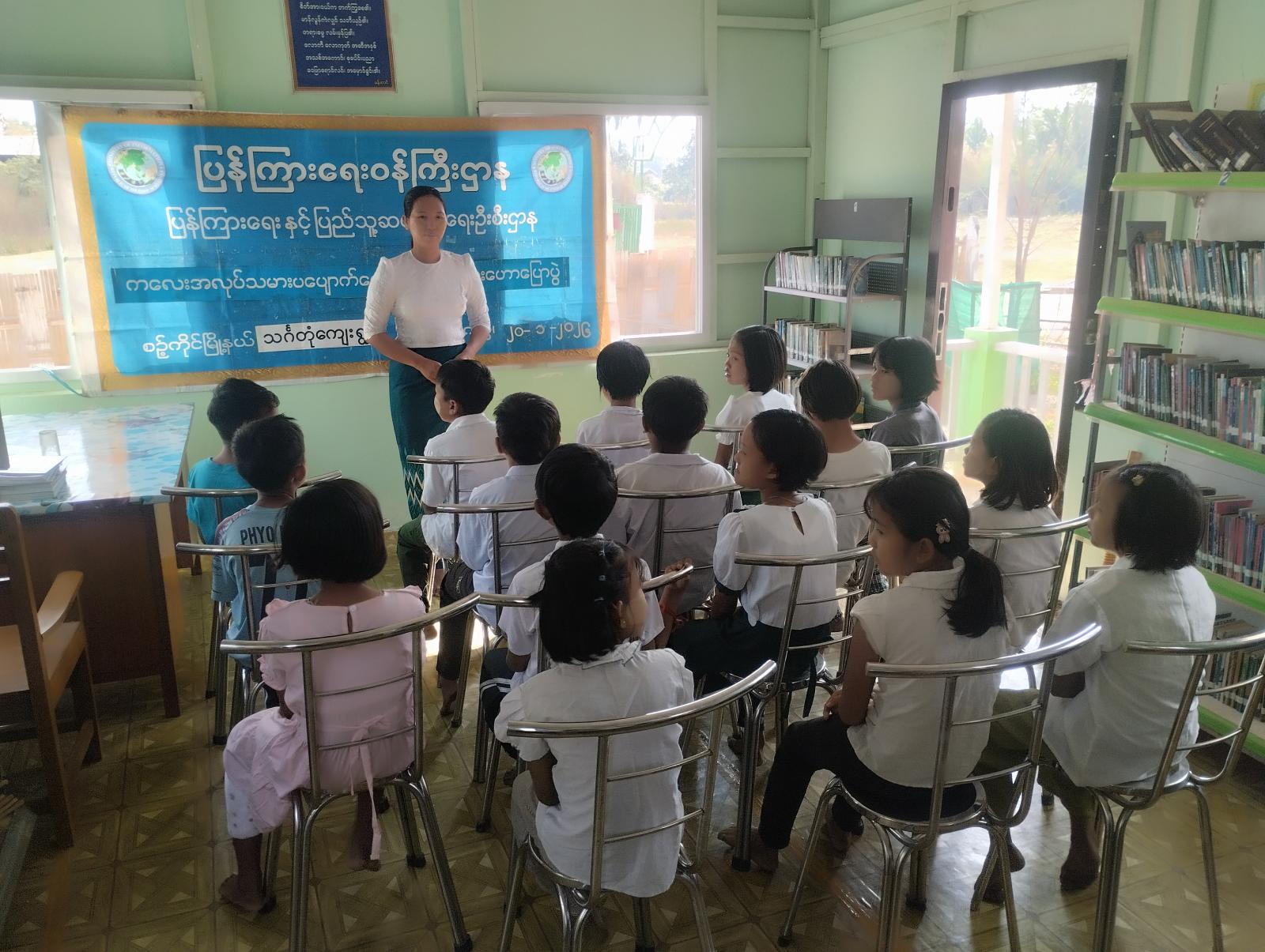 ရှေးဦးစွာ မြို့နယ်ပြန်ကြားရေးနှင့်ပြည်သူ့ဆက်ဆံရေးဦးစီးဌာန စာကြည့်တိုက်လက်ထောက်-၃ ဒေါ်နှင်းအိအိခိုင်က ကျောင်းသား၊ ကျောင်းသူများ အသိပညာဗဟုသုတ ဖွံ့ဖြိုးတိုးတက်စေရန်၊ နိုင်ငံတော်အတွက် အကျိုးပြုမည့် အနာဂတ်သားကောင်းရတနာ၊ သမီးကောင်းရတနာများ ပေါ်ထွန်းလာစေရန်၊ ဗလငါးတန်ဖွံ့ဖြိုးတိုးတက်လာစေရန်၊ နှုတ်မှုစွမ်းရည်များတိုးတက် လာစေရန်၊ လူအများအလယ်တွင်ရဲဝင့်စွာ ပြောဆိုတတ်စေရန်၊ စာဖတ်သည့်အလေ့အကျင့်ကောင်းများ ရရှိလာပြီး စာကြည့်တိုက်နှင့် ရင်းနှီးကျွမ်းဝင်လာစေရန် စသည်တို့ကိုရည်ရွယ်ကာ ယခုလို ဟောပြောပွဲများ၊ ပြပွဲ၊ ပြိုင်ပွဲများ ကျင်းပပြုလုပ်ရခြင်းဖြစ်ကြောင်း ပြောကြားခဲ့သည်။ ဆက်လက်၍ ကလေးအလုပ်သမား၏ အဓိပ္ပာယ်၊ အသက်အရွယ် အပိုင်းအခြား၊ ဥပဒေပုဒ်မများနှင့် ပြစ်မှုပြစ်ဒဏ်များ၊ ဆက်သွယ်တိုင်ကြားနိုင်သည့် နည်းလမ်းများ စသည့်အကြောင်းအရာများကို အသိပညာပေး ရှင်းလင်းဟောပြောခဲ့သည်။