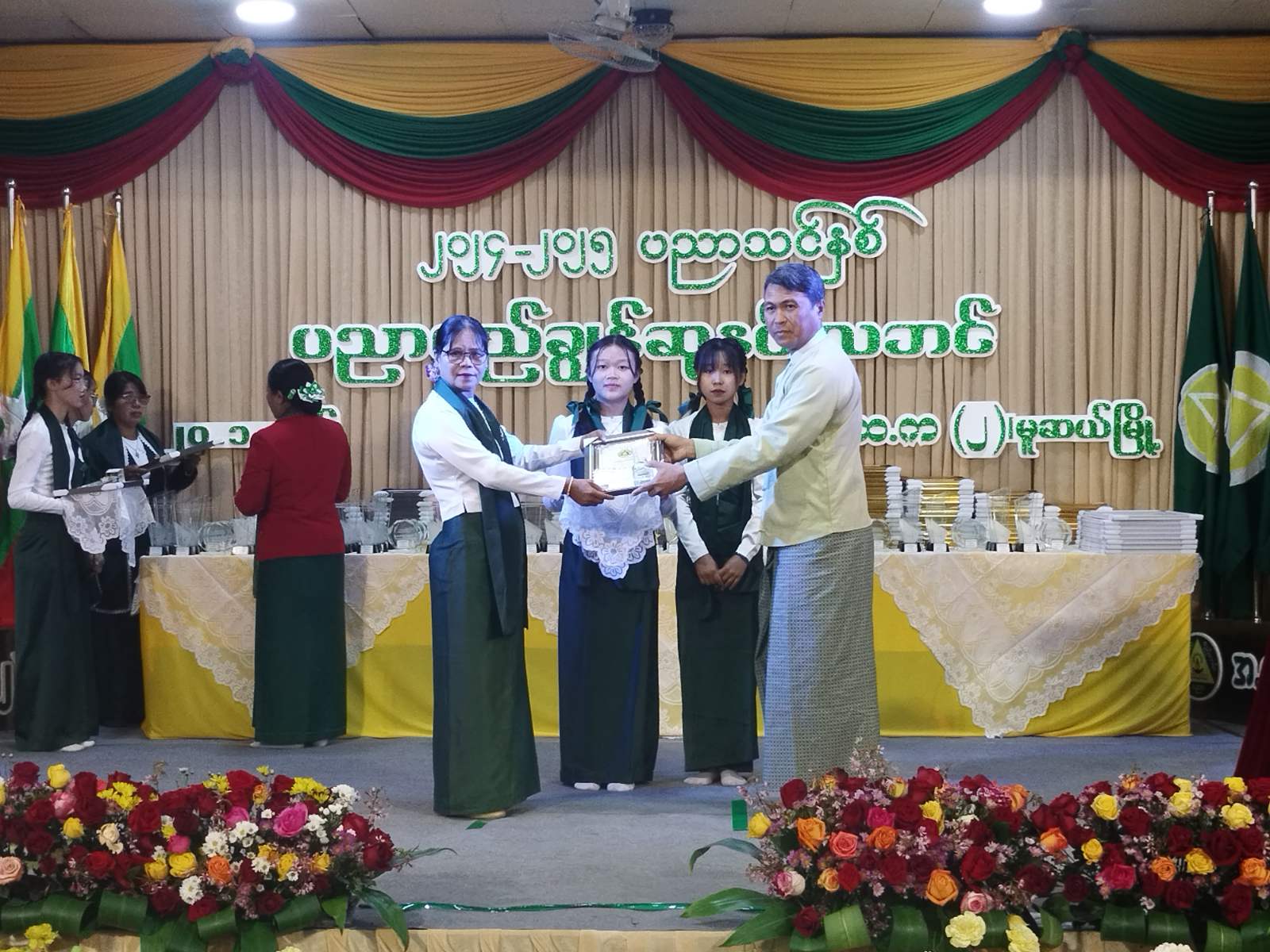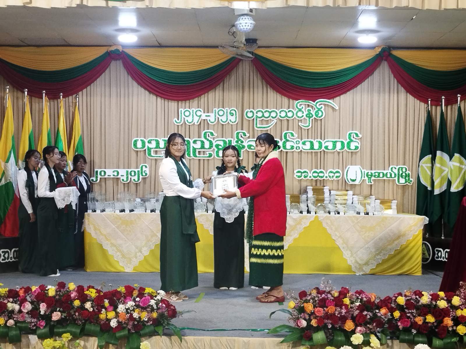 အခမ်းအနားတွင် ၂၀၂၅ ခုနှစ် ရှမ်းပြည်နယ်(မြောက်ပိုင်း)၌ တက္ကသိုလ်ဝင်တန်းအောင်ချက်အကောင်းဆုံးဆု ပထမဆုကို ခရိုင်စီမံခန့်ခွဲရေးနှင့်အုပ်ချုပ်ရေးကော်မတီအဖွဲ့ဝင် ဦးကိန်မိုင်က ချီးမြှင့်ပေးအပ်ခဲ့ရာ တာဝန်ခံကျောင်းအုပ်ဆရာမကြီးဒေါ် စန္ဒာရှိန်က လက်ခံရယူခဲ့သည်။