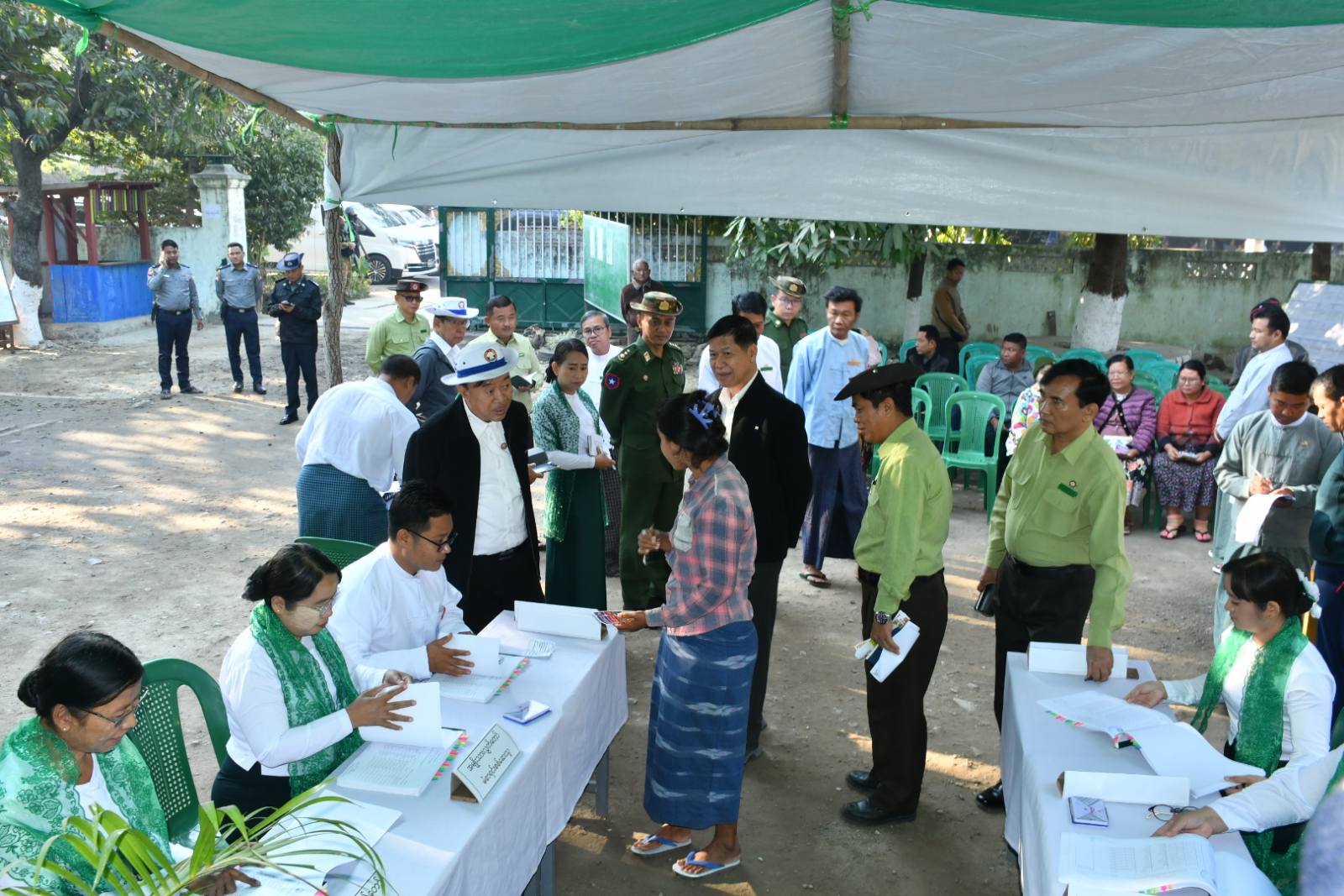 မန္တလေးတိုင်းဒေသကြီး အောင်မြေသာစံခရိုင် ပုသိမ်ကြီးမြို့နယ်၌ ပါတီစုံဒီမိုကရေစီအထွေထွေရွေးကောက်ပွဲအပိုင်း(၃) အောင်မြင်စွာကျင်းပနိုင်ရေးအတွက် ရပ်ကွက်/ကျေးရွာများရှိမဲရုံပြင်ဆင်ထားမှုအခြေအနေကို တိုင်းဒေသကြီးဝန်ကြီးချုပ်ဦးမျိုးအောင်နှင့် တိုင်းဒေသကြီးအဆင့်ဌာနဆိုင်ရာများ ဇန်နဝါရီ ၂၀ရက် နံနက်ပိုင်းက လှည့်လည်ကြည့်ရှုသည်။