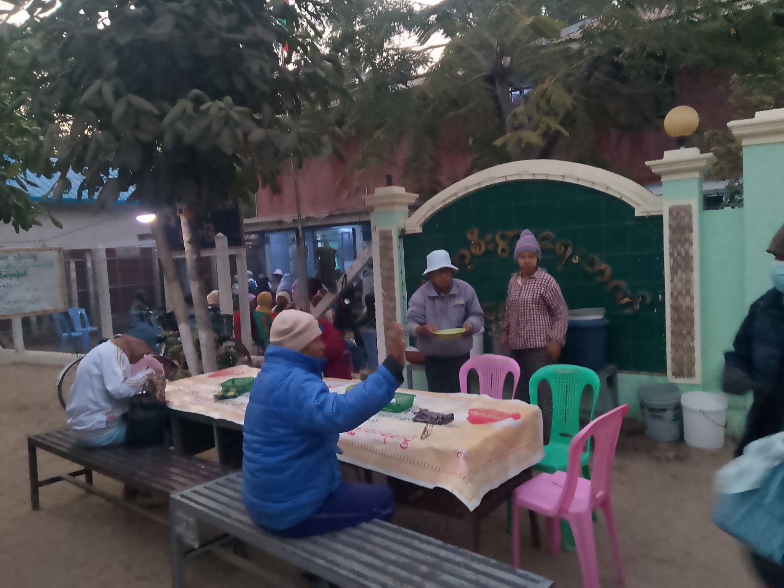 ထို့နောက် ပင်စင်လာရောက်ထုတ်ယူကြသော အငြိမ်းစားဝန်ထမ်းများကို မြစ်သားမြို့နယ်မေတ္တာမွန် ပရဟိတအသင်းမှ ကြက်သားဆန်ပြုတ်များဖြင့် အလှူဒါနပြုလုပ်တိုက်ကျွေးခဲ့ကြောင်း မြန်မာ့စီးပွားရေးဘဏ် တာဝန်ရှိသူတစ်ဦးထံမှ သိရသည်။