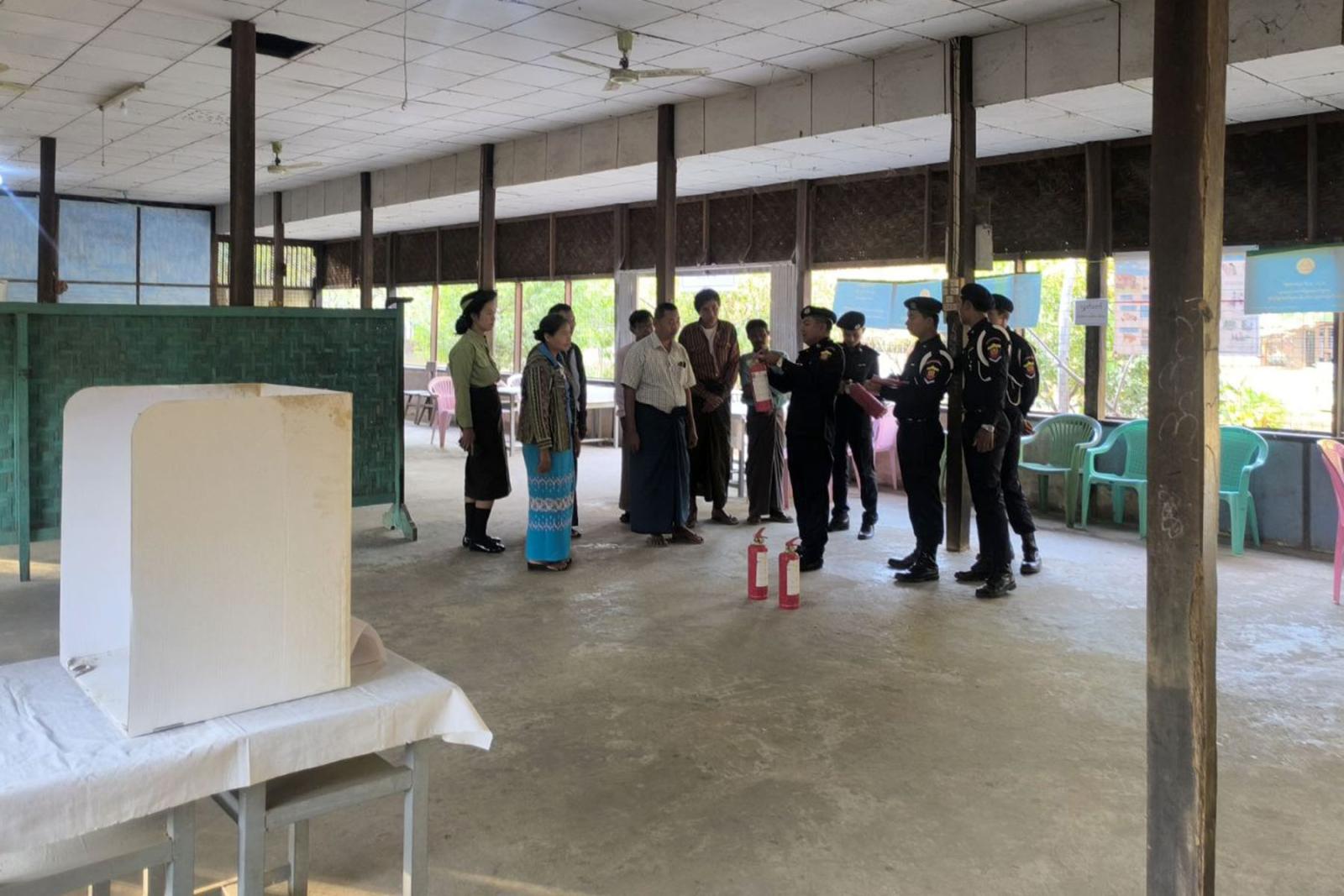 ထိုသို့ မီးဘေးလုံခြုံရေး စစ်ဆေးဆောင်ရွက်ရာတွင် မြို့နယ်မီးသတ်ဦးစီးမှူး ဦးအောင်ကိုသန့် ဦးဆောင်၍ မြို့နယ်မီးသတ်တပ်ဖွဲ့ဝင်များက မြင်းခြံမြို့ပေါ် ရပ်ကွက်အတွင်းရှိ မဲရုံများနှင့် မဲရုံပတ်ဝန်းကျင်အနီး နေအိမ်များတွင် မီးဘေးအန္တရာယ်မဖြစ်ပေါ်စေရေးအတွက် ဂရုစိုက် အသုံးပြုရေး၊ မီးသတ်ဆေးဘူးများ အသုံးပြု ရ/မရ၊ မီးသတ် ဆေးဘူးများထားရှိရန်၊ လျှပ်စစ်မီးများ စနစ်တကျအသုံးပြုရေးများအား စစ်ဆေးခဲ့ပြီး မီးဘေးလုံခြုံရေး အကြုံပြုချက်များကို အသိပညာပေး ဟောပြောခဲ့ကြောင်း သိရသည်။
