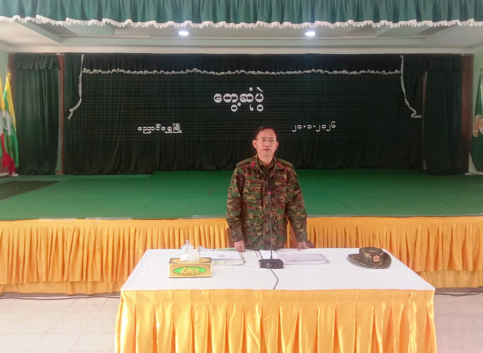 အရှေ့ပိုင်းတိုင်းစစ်ဌာနချုပ်တိုင်းမှူး ဗိုလ်မှူးချုပ်ကျော်နိုင်ဦးသည် တာဝန်ရှိသူများလိုက်ပါလျက် ယမန်နေ့ နံနက် (၉)နာရီက ညောင်ရွှေမြို့နယ်ရှိ ဌာနဆိုင်ရာများ၊ မြို့နယ်/ ရပ်ကွက်/ ကျေးရွာအုပ်စု ရွေးကောက်ပွဲကော်မရှင်အဖွဲ့ခွဲတာဝန်ရှိသူများနှင့် တွေ့ဆုံခြင်းအခမ်းအနားကို ညောင်ရွှေမြို့ အမှတ်(၁)အခြေခံပညာအထက်တန်းကျောင်း ပတ္တမြားခန်းမ၌ ပြုလုပ်ခဲ့သည်။