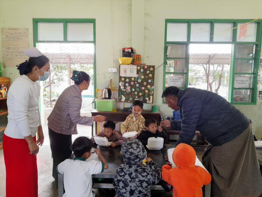 KG ကျောင်းသား/ကျောင်းသူများအား အဟာရကျွေးမွေးရာတွင် မြို့နယ်ပြည်သူ့ကျန်းမာရေးနှင့် ကုသရေးဦးစီးဌာန မြို့နယ်ဦးစီးမှူး ဒေါက်တာအေးလွင်၊ မြို့နယ်မိခင်ကလေးကျန်းမာရေးဌာနမှ တာဝန်ရှိသူများက သက်ဆိုင်ရာ ကျောင်းအုပ်ဆရာကြီး/ဆရာမကြီးများနှင့် ဆရာ/ဆရာမများ ပူးပေါင်းပြီး KG ကျောင်းသား၊ ကျောင်းသူများအား တစ်ကိုယ်ရေသန့်ရှင်းရေးနှင့် ပတ်သက်သည့် အကြောင်းအရာများအား ရှင်းလင်းပြောကြားခဲ့ပြီး စနစ်တကျ လက်ဆေးနည်းများ၊ သွားခံတွင်း သန့်ရှင်းရေးလုပ်ငန်းများကို လက်တွေ့ဆောင်ရွက်ပေးခဲ့ပြီး ကြက်သားဟင်း၊ ချဉ်ပေါင်းဟင်းရည်နှင့် အာဟာရပဲထမင်းများ ကျွေးမွေးခဲ့ကြောင်း မြို့နယ်ပြည်သူ့ကျန်းမာရေးနှင့်ကုသရေးဦးစီးဌာနမှ တာဝန်တစ်ဦးထံမှ သိရသည်။