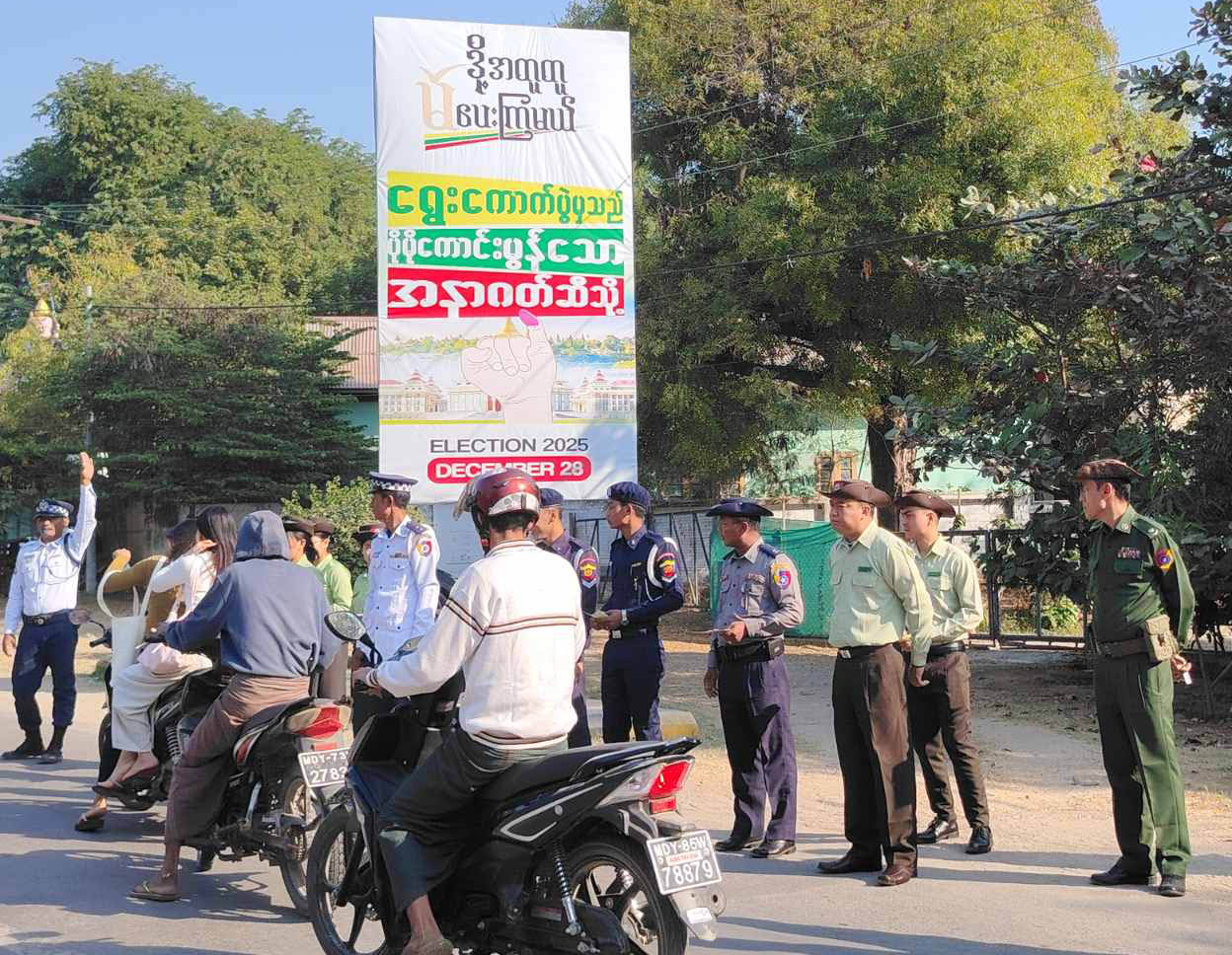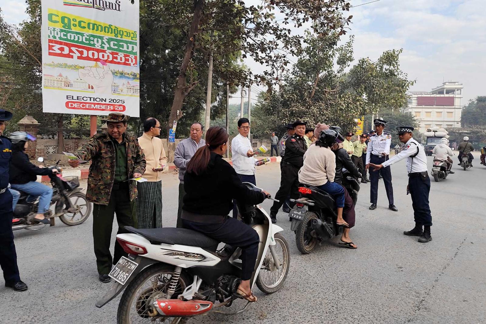 မြင်းခြံမြို့၌ ဇန်နဝါရီလ ၂၅ ရက်နေ့တွင် ကျင်းပမည့် ပါတီစုံဒီမိုကရေစီအထွေထွေရွေးကောက်ပွဲ အပိုင်း (၃) တွင် အသက် ၁၈ နှစ်နှင့်အထက် မဲပေးပိုင်ခွင့်ရှိသည့် နိုင်ငံသားတိုင်း နိုင်ငံသားအခွင့်အရေး မဆုံးရှုံးစေရန် ဆန္ဒမဲပေးနိုင်ရေးအတွက် “ဒို့အတူမဲပေးကြမယ်” လက်ကမ်းစာစောင်များကို လမ်းသွားလမ်းလာဖြတ်သန်းသွားလာကြသည့် ဒေသခံပြည်သူများနှင့် ခရီးသွားပြည်သူများထံသို့ ခရိုင်စီမံခန့်ခွဲရေးနှင့်အုပ်ချုပ်ရေးကော်မတီဥက္ကဋ္ဌ ဦးမင်းမင်းထွန်းနှင့်အဖွဲ့ဝင်များ၊ မြို့နယ်စီမံခန့်ခွဲရေးနှင့်အုပ်ချုပ်ရေးကော်မတီဥက္ကဋ္ဌ ဦးစိုးထွဋ်နှင့်အဖွဲ့ဝင်များ၊ ခရိုင်ပြန်ကြားရေးနှင့်ပြည်သူ့ဆက်ဆံရေးဦးစီးဌာန ဦးစီးအရာရှိ ဦးထိန်လင်းနှင့်ဝန်ထမ်းများ၊ မြို့နယ် မီးသတ်တပ်ဖွဲ့ဝင်များက ဖြန့်ဝေပေးခဲ့သည်။