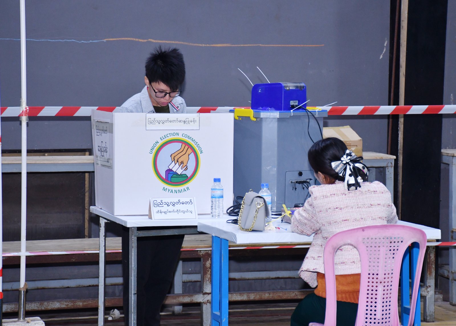 မြို့နယ်အတွင်းရှိ မဲရုံအသီးသီး၌ မဲရုံမှူး၊ ဒုတိယမဲရုံမှူးနှင့် မဲရုံအဖွဲ့ဝင်များက ရပ်ကွက်ရွေးကောက်ပွဲကော်မရှင်အဖွဲ့ခွဲဥက္ကဋ္ဌနှင့် အဖွဲ့ဝင်များ၊ မဲရုံကြီးကြပ်သူများ၊ ရွေးကောက်ပွဲစောင့်ကြည့်လေ့လာသူများနှင့် ပါတီကိုယ်စားလှယ်လောင်းများစသည့် အသိသက်သေများ ရှေ့မှောက်တွင် မြန်မာ့အလက်ထရောနစ် MEVM မဲပေးစက်မဲပုံးများ စစ်ဆေးခြင်း၊ လုံခြုံရေးကြိုးတပ်ဆင်ခြင်းနှင့် ကုတ်နံပါတ်များ စစ်ဆေးဆောင်ရွက်ပြီး နံနက် ၆ နာရီတွင် မဲရုံစတင်ဖွင့်လှစ်ရာ မဲဆန္ဒရှင်ပြည်သူများက မိမိတို့အမည်စာရင်းပါ သက်ဆိုင်ရာမဲရုံများတွင် အေးချမ်းလွတ်လပ်စွာ ဆန္ဒမဲပေးကြသည်။