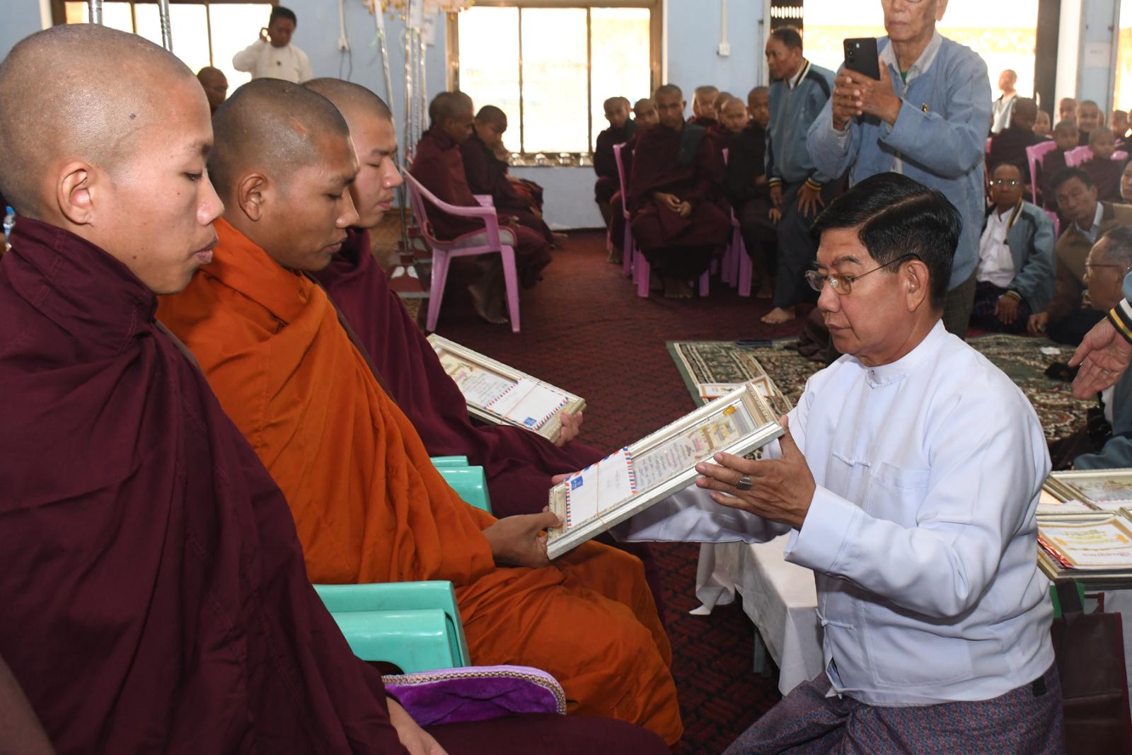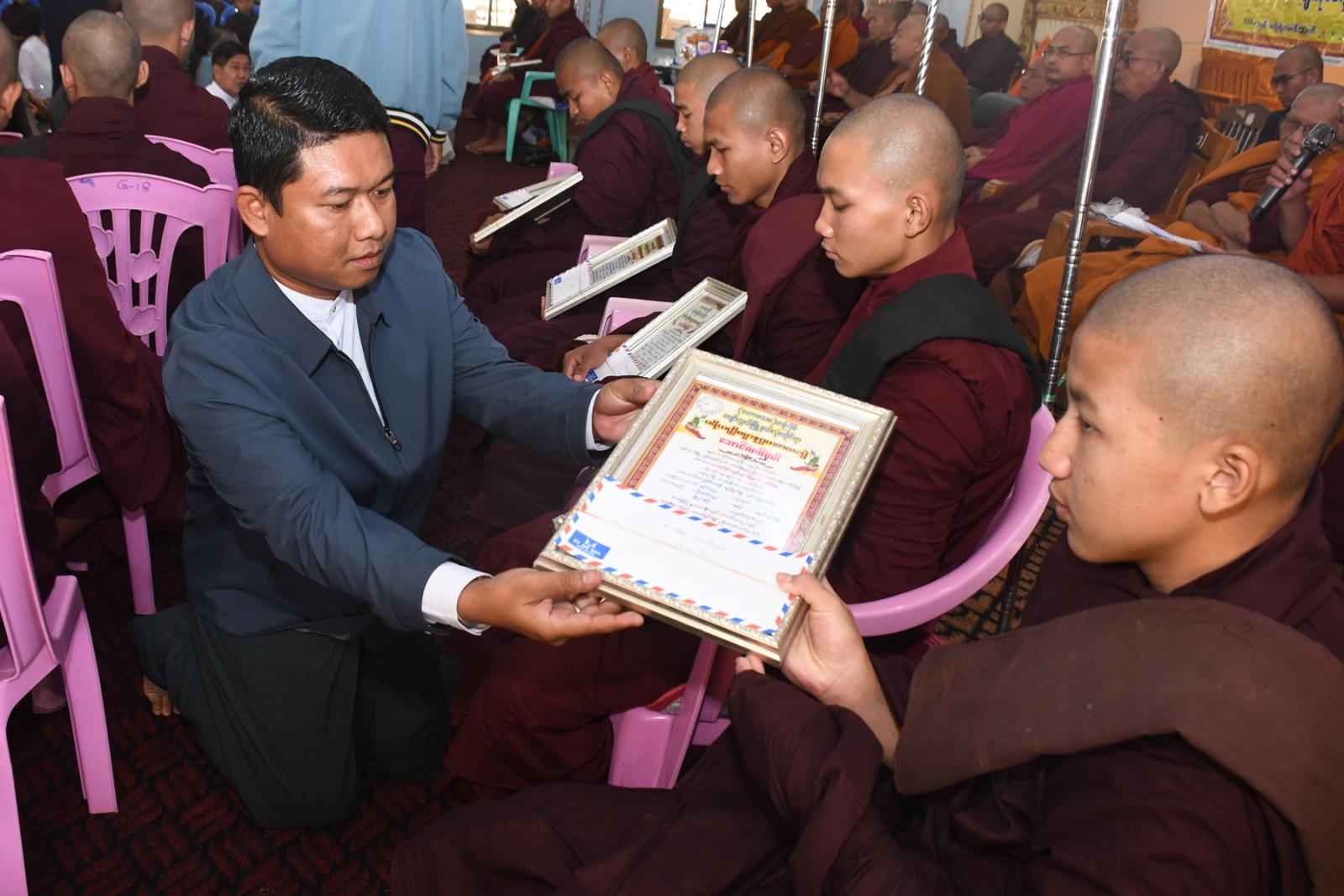 ဆက်လက်၍ (၁၁)ကြိမ်မြောက်ပရိယတ္တိဓမ္မာနုဂ္ဂဟစာမေးပွဲ၌အောင်မြင်ခဲ့သည့် သံဃာတော် ၁၂၀ ပါးတို့အား အလှူရှင် ဒုတိယဗိုလ်ချုပ်ကြီး(ငြိမ်း)သောင်းအေး၊ မြို့နယ်ဒုတိယအုပ်ချုပ်ရေးမှူး ဦးကျော်ကျော်ဆန်း၊ပရိယတ္တိဓမ္မာ နုဂ္ဂဟအသင်းဥက္ကဋ္ဌနှင့် အလှူရှင်များက စာအောင်ဆုများ၊ လှူဖွယ်ပစ္စည်းများ ဆက်ကပ်လှူဒါန်းခဲ့ပြီး ဆရာတော်၊ သံဃာတော်များအား နေ့ဆွမ်းဆက်ကပ် လှူဒါန်းခဲ့ကြောင်း သိရသည်။