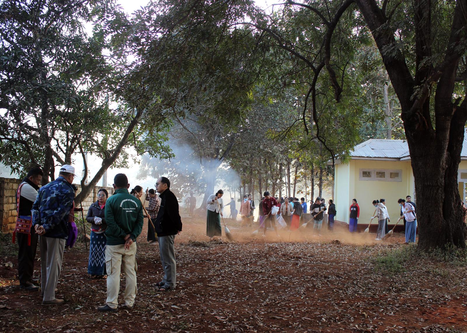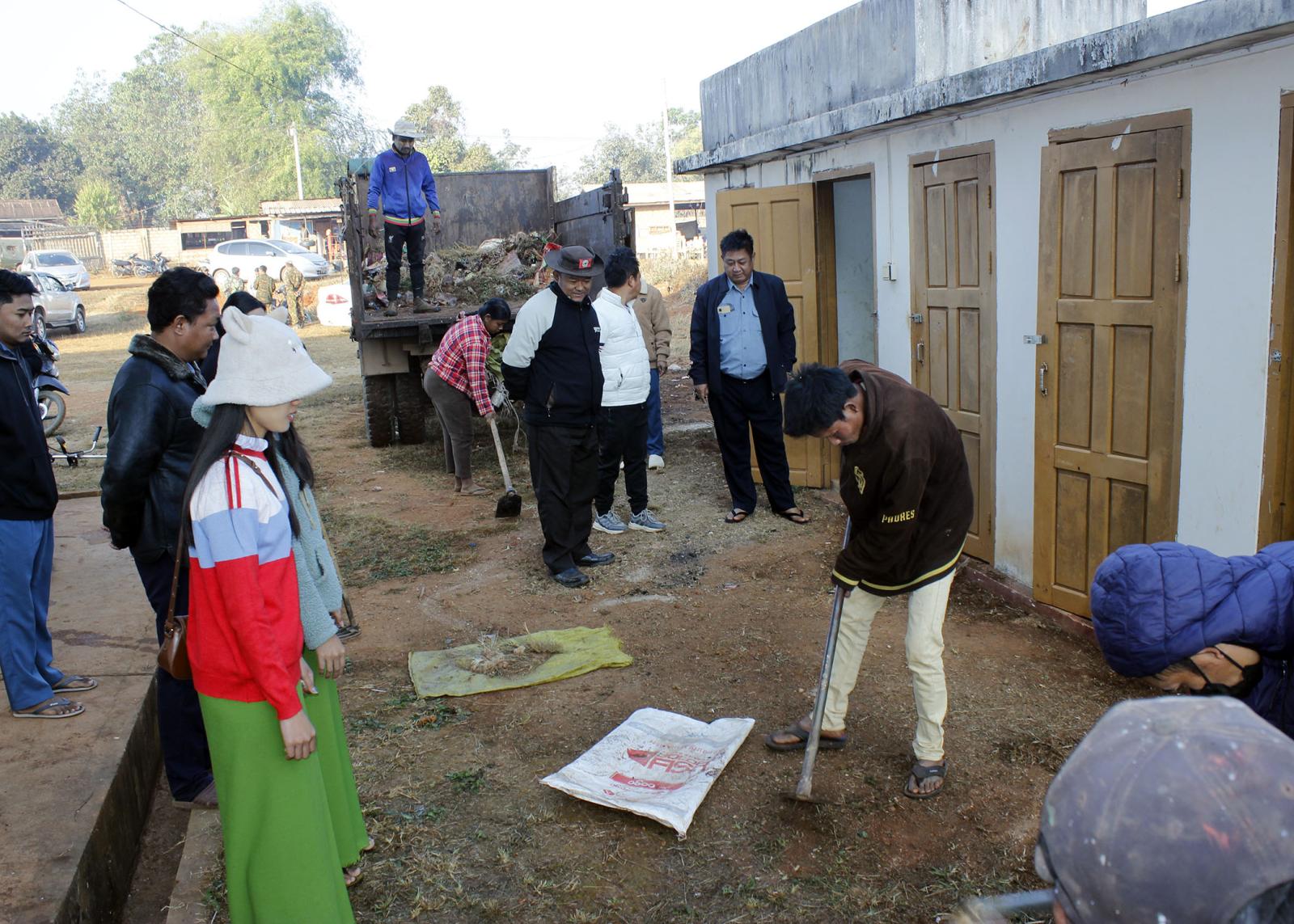 ထိုသို့ဆောင်ရွက်ရာတွင် မြို့နယ်စီမံခန့်ခွဲရေးနှင့်အုပ်ချုပ်ရေးကော်မတီဥက္ကဋ္ဌ ဦးနေမျိုးထွန်းက ဦးဆောင်၍ ဌာနဆိုင်ရာအကြီးအကဲများ၊ ဝန်ထမ်းများ၊ ဆရာ/ဆရာမများ၊ မီးသတ်တပ်ဖွဲ့ဝင်များ၊ မြို့မိမြို့ဖများနှင့် ရပ်ကွက်နေပြည်သူများ၊ တပ်မတော်သားများက အဆိုပါနေရာများအတွင်း လျှပ်စစ်မီးသွယ်တန်းခြင်း၊ လိုအပ်သည့် သန့်ရှင်းရေးလုပ်ငန်းများနှင့် သန့်စင်ခန်းများသန့်ရှင်းခြင်း၊ သန့်စင်ခန်းအသစ်များ ဆောက်လုပ်ခြင်းတို့နှင့် အခြားလိုအပ်သည်များကို စုပေါင်းဆောင်ရွက်ခဲ့ကြပြီး စွန့်ပစ်အမှိုက်များကို မြို့နယ်စည်ပင်သာယာရေးဌာနက အမှိုက်သိမ်းယာဉ်ဖြင့် စနစ်တကျ စွန့်ပစ်ပေးခဲ့ကြောင်း သိရသည်။