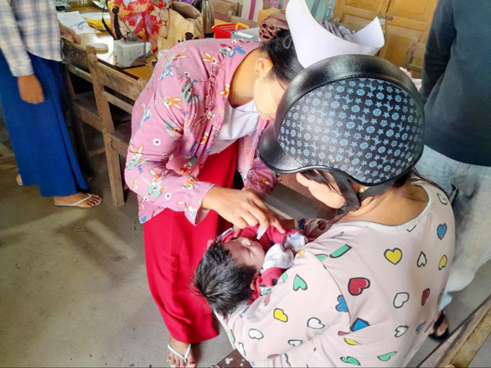 ဧရာဝတီတိုင်းဒေသကြီး၊ မြန်အောင်ခရိုင်၊ ကြံခင်းမြို့နယ်အတွင်းရှိ ကျေးရွာ/အုပ်စုများ၌ ကိုယ်၀န်ဆောင်မိခင်များနှင့် မွေးစမှအသက် ၂ နှစ်အောက် ကလေးများအား ပုံမှန်ကာကွယ်ဆေးများ ထိုးနှံပေးခြင်းကို ယနေ့နံနက်ပိုင်းက ကျေးလက်ကျန်းမာရေးဌာနများ၊ ရပ်ကွက်အုပ်ချုပ်ရေးမှူးရုံးများနှင့် သတ်မှတ်စုရပ်ရပ်ကွက်အသီးသီးတွင် နေ့ရက်များအလိုက် ကာကွယ်ဆေးများ ထိုးနှံတိုက်ကျွေးပေးလျက်ရှိသည်။